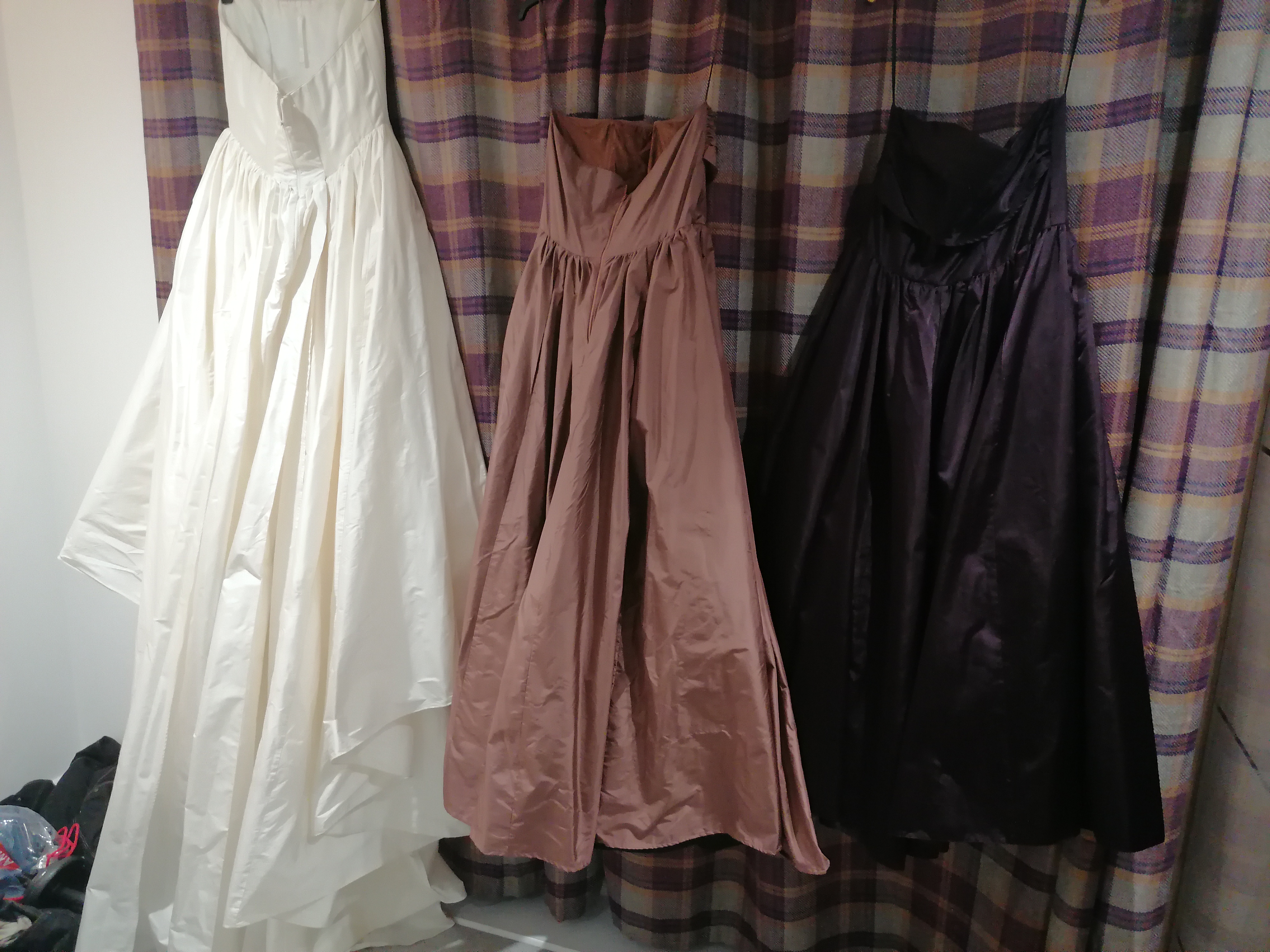 Thought I'd share a picture of these beauties. The wedding dress on the left is Caroline Castigliano, adjusted with an extra panel of silk taffeta to fit me. Incredible amount of the highest quality silk taffeta.
