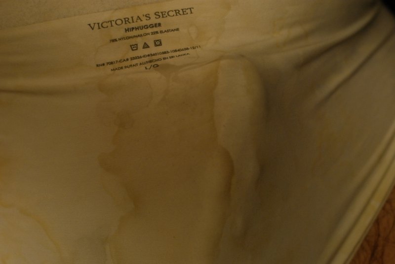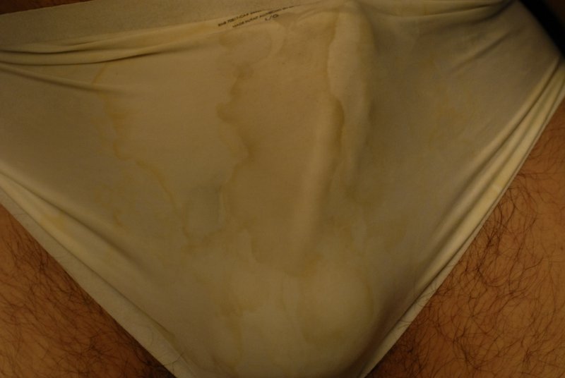 I like jerking off into my hiphuggers. I just bought them, no story. I put them on backwards and inside out for a better time. Then, I cum on my wifes chemise. This one's about ready for me to make her wear it and fuck her good! She does it!