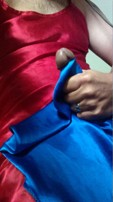 here I am, having a great time jacking off with my favorite satin.