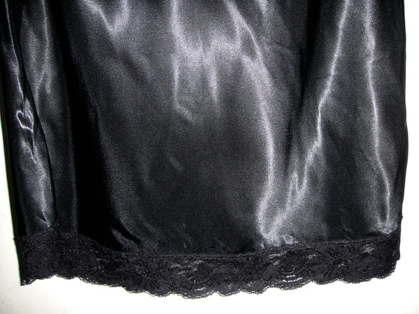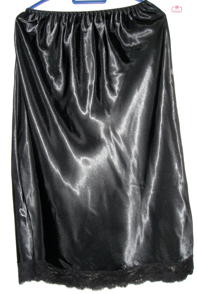 My black satin half slip..I lost count how many times I have cummed on this. So shiny and slippery.