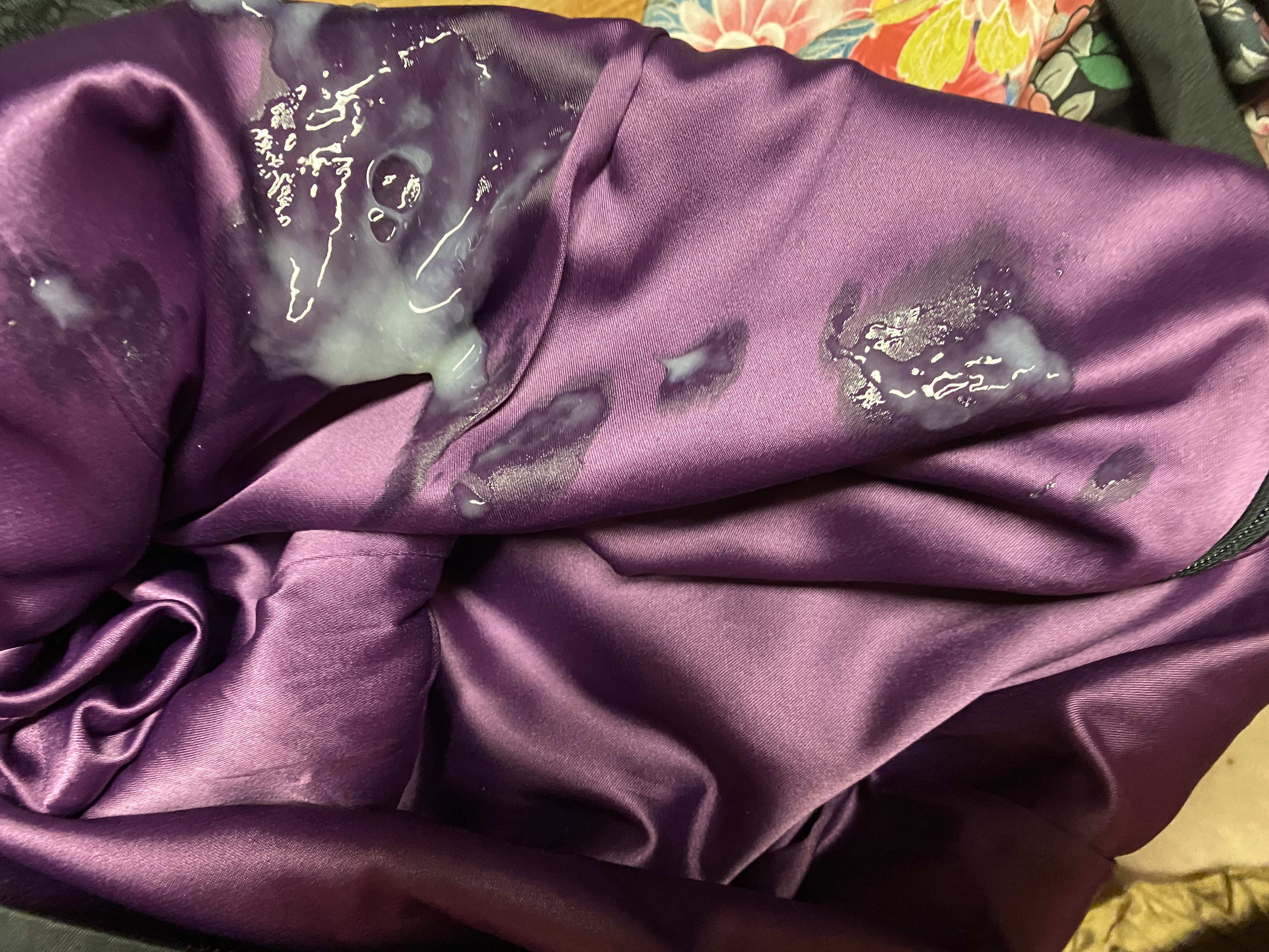 I love my satin to wear and cum in. I have 100 dresses Also love satin skirt lining and pee Have to hide it all though but cannot stop buying ... It is a real fetish Sure wish i could share ....