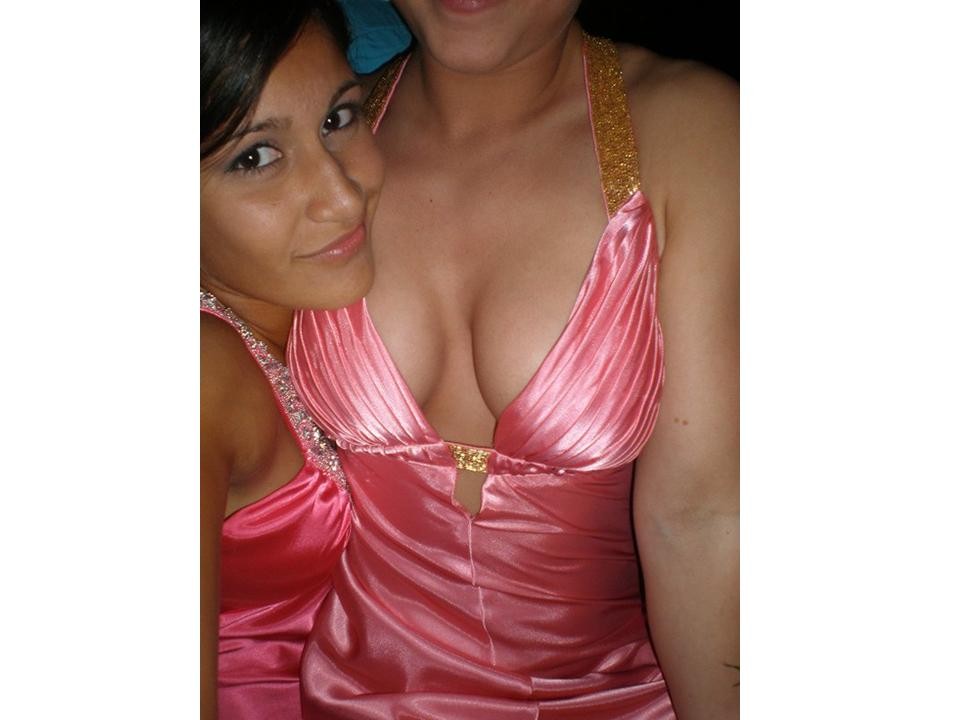 The first one with the rack begging to pop out of that pink satin dress and her hot friend also in a hot pink dress!