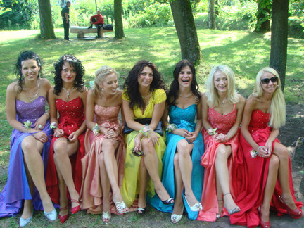My Sister's friends wore some nice satin dresses to Prom. I was very surprised. My Sister of course didn't go to Prom because of her dickhead boyfriend, but I have a feeling if she did go, she probably wouldn't have worn a satin dress. She has the most boring style aside from her Homecoming dresses and leather jacket.