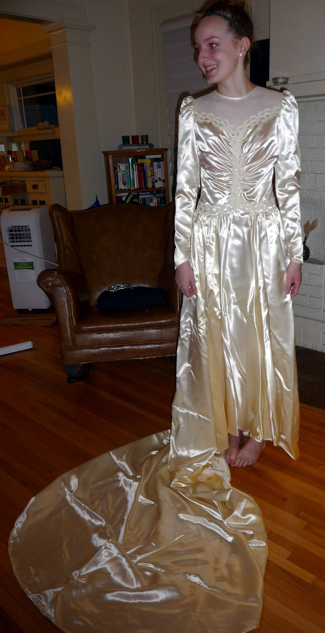 Nothing better than cumming on a elegant and what was once was a very expensive satin bridal gown. The smell of vintage satin is like no other.