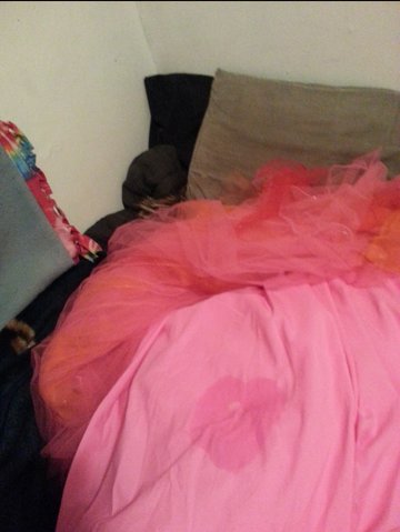 I knew that orange and pink prom dress was going to get it sooner or later hahapoofypromdresses wrote:Here is the red, pink and orange dress I've had for over a year and was afraid to cum on. I finally stepped up and shot a load on it