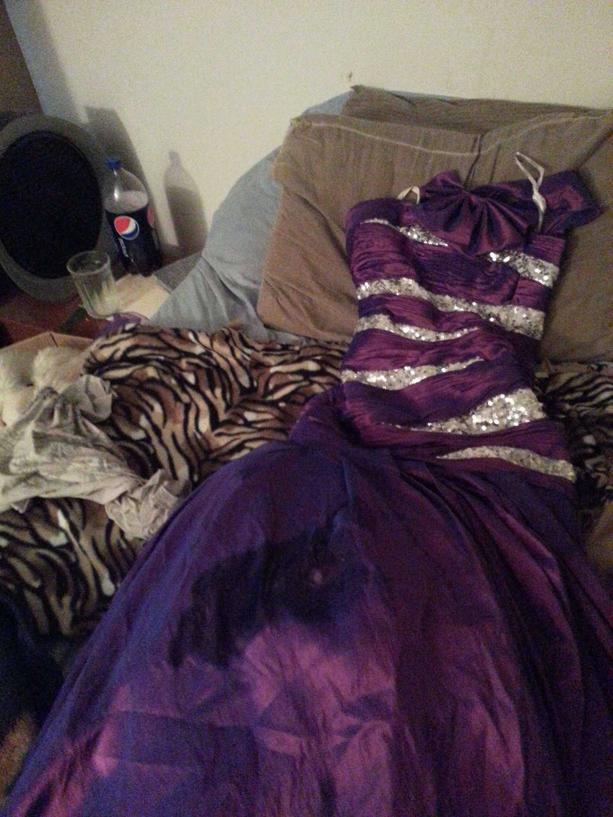 Here is the purple Tony bowls Mermaid dress. Looks better with a load of my cum on it lol