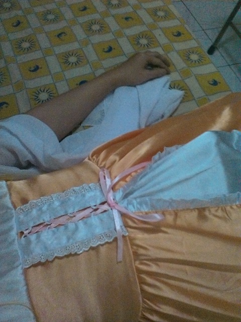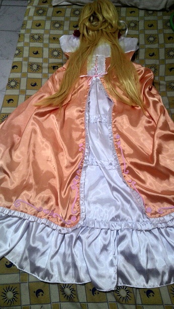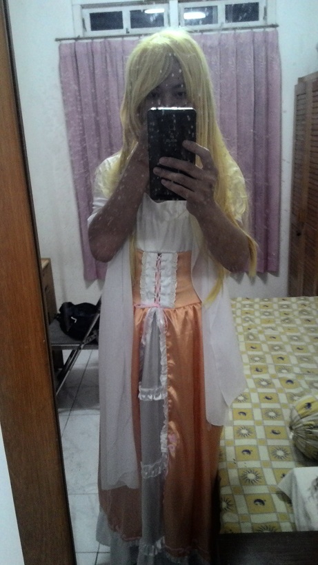 Last night i wearing satin cosplay outfit (Anime : Amagi Briliant Park, Cast : Latifa) with blonde wig
