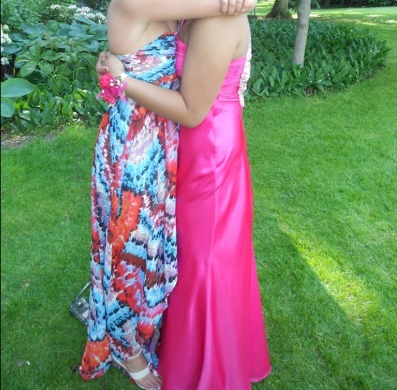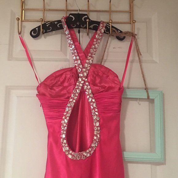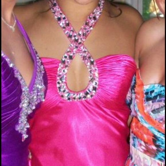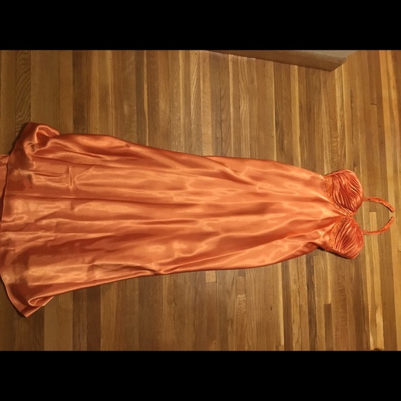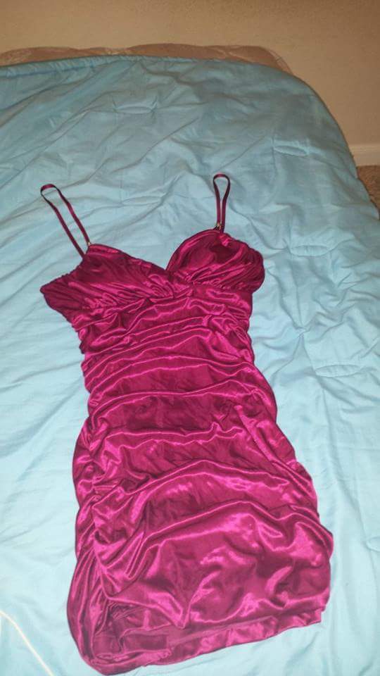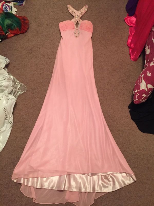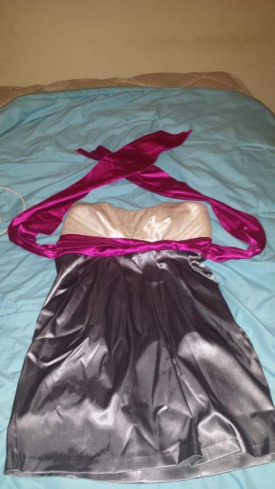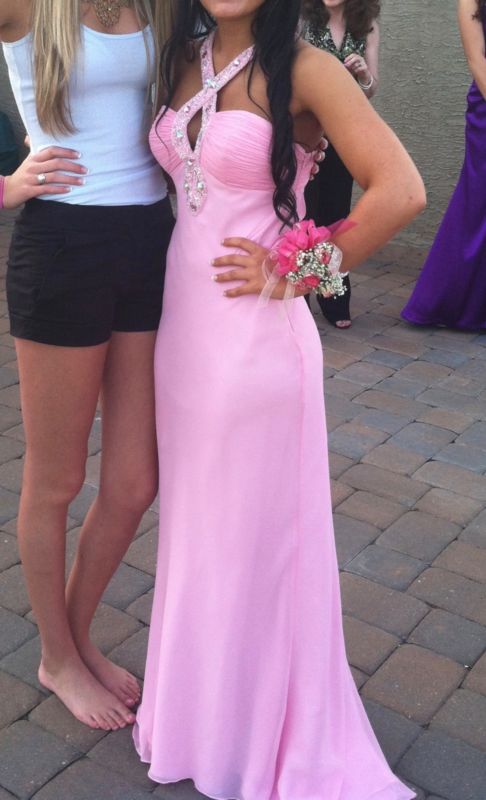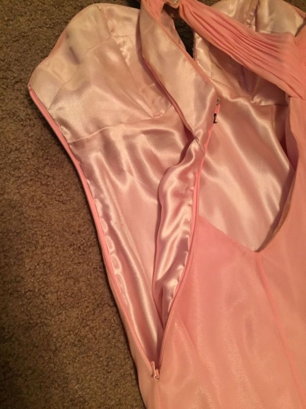 From the same seller as the hot pink satin prom dress above. Here's another one I just bought from her. This one has a light pink satin on the inside. Under the darker pink chiffon, it looks like double-sided satin. Just had to have it. Ugh...