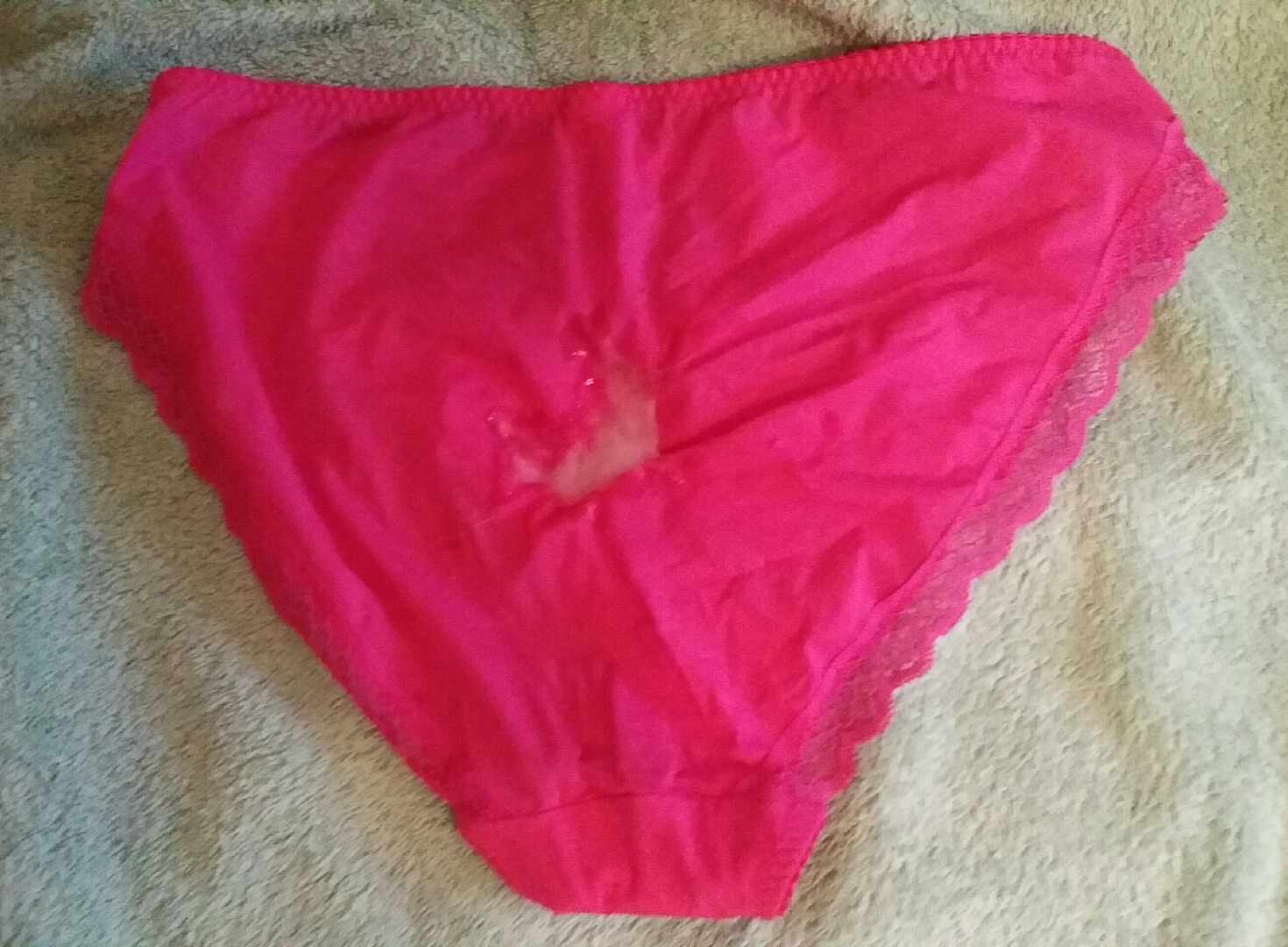 A lovely thick white sticky load in them...satin panty heaven!!