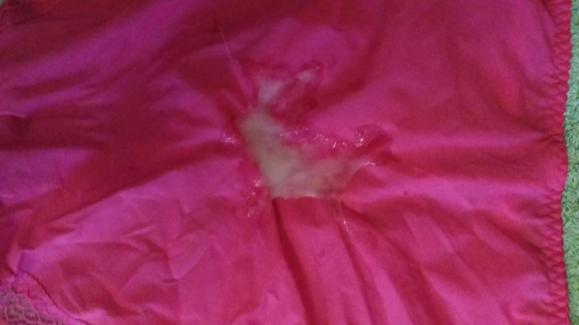 Cream white cum on soft pink satin panties...
