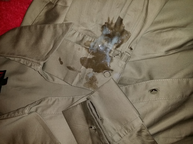 Oh dear oh dear... i have been a very naughty boy...! Those double cufflinked blouse cuffs were teasing me! I hadnt cum for days and i just couldnt help myself! That cuff got quite a beating today! Well and truely used! An excellent cum.....