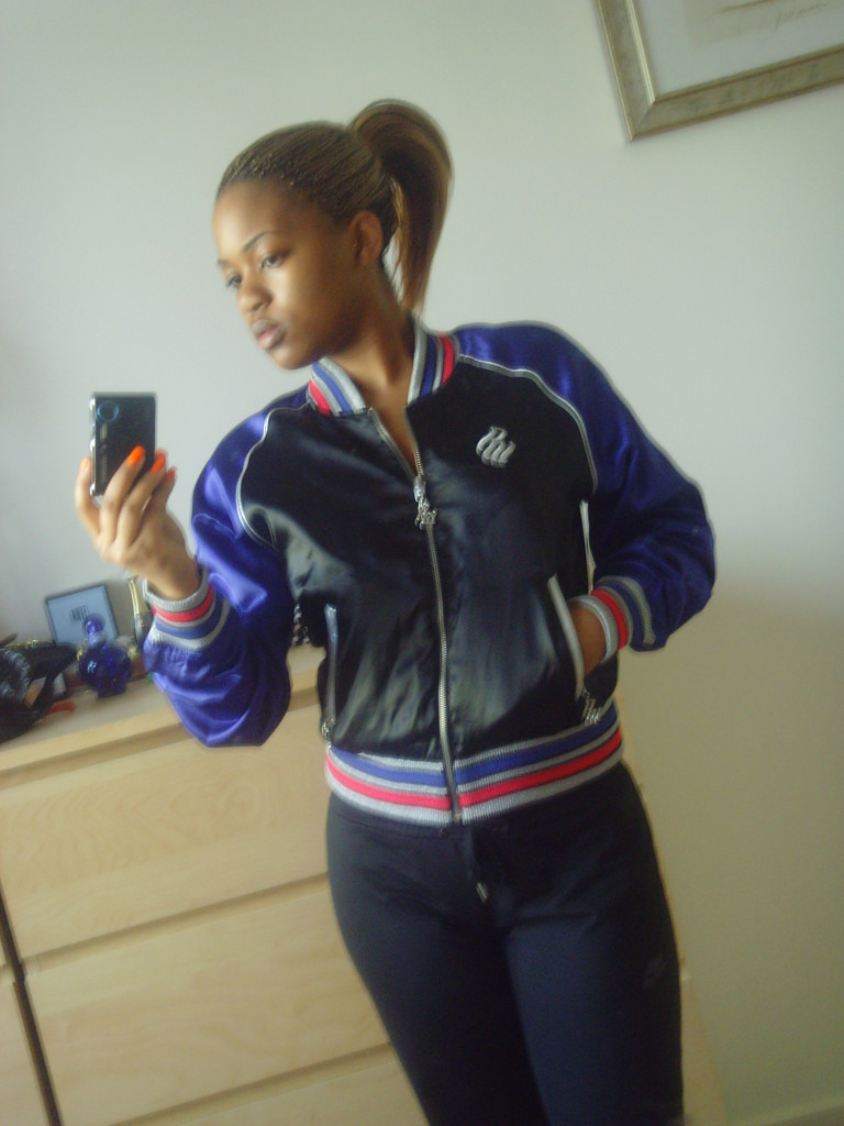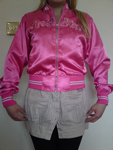 Awesome work bunnsatin!! lets see some cum on the green shiny side of the sleeve!!! Love the rocawear jacket!!!!