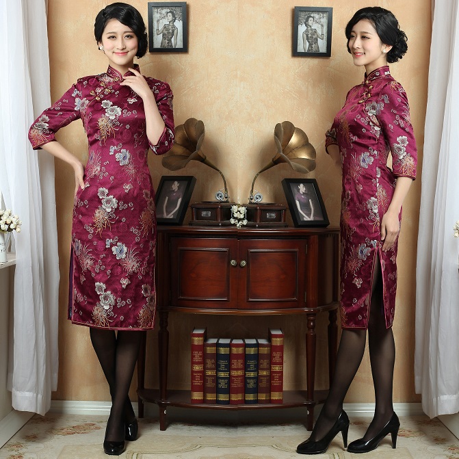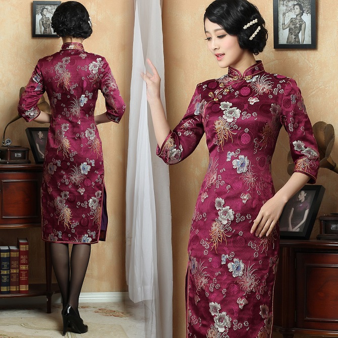 Here is an amateur in a Long Burgundy Cheongsam