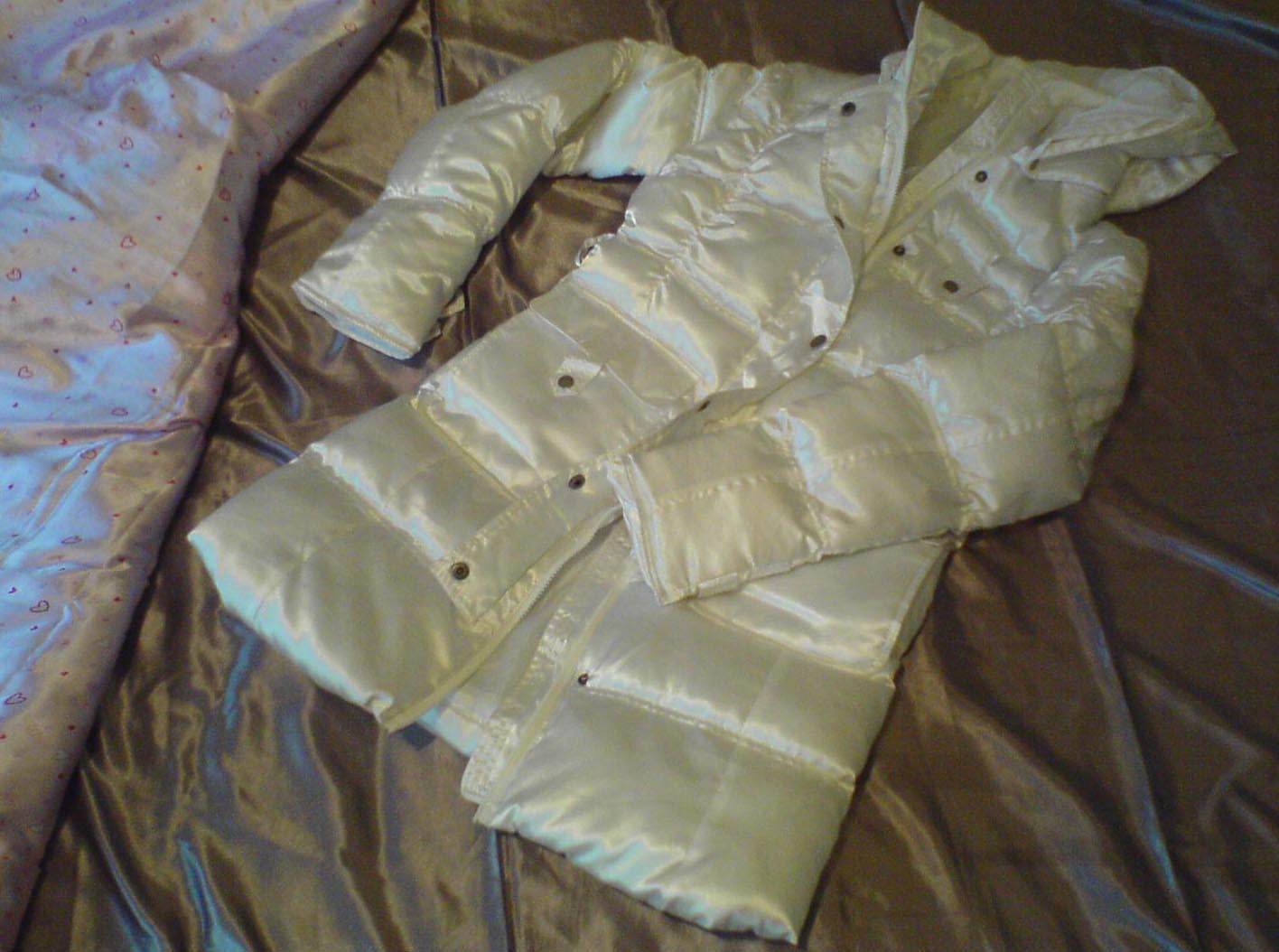 I've been watching this coat on Ebay and finally made an offer and won it. It came this morning and it is a satin goddess. It is 51 inches long and has a 87 inch sweep. That's over 7 feet wide and the satin feels so silky and smooth and just shimmers in the light. She is still a virgin, but I will shortly be giving her a well deserved fuck. She is a dream coat and I will probably need to cum many times with her today. When I was taking her out of the box and first touched that beautiful satin lining I almost came right there.