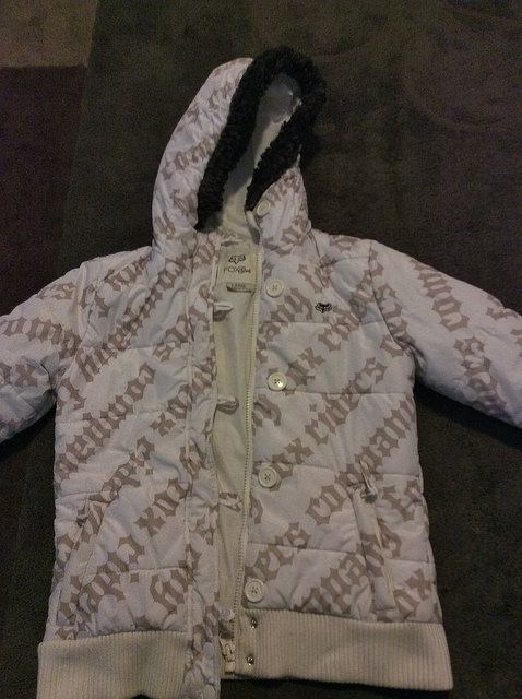 I need your guys help. The girl in the blue coat has had that gray coat the other girl is holding since middle school i never saw her wear it until a year ago when i saw her at a gas station. I've been trying to find the coat ever since we had a 6 grade class together i once had the name of the company that made it but looking at the tag in the coat but i lost it like year after we had class and haven't found it or the company since all i now is that it's a gray puffer like coat with a ziper and button up with a fur line hood. the company starts with a M but it's not moncler and i one misclicked on maps instead of images and it took me to a place in Italy that's all i know of the coat.