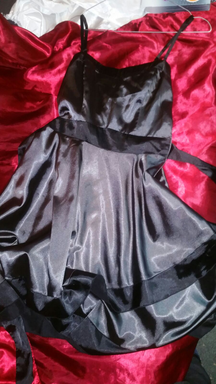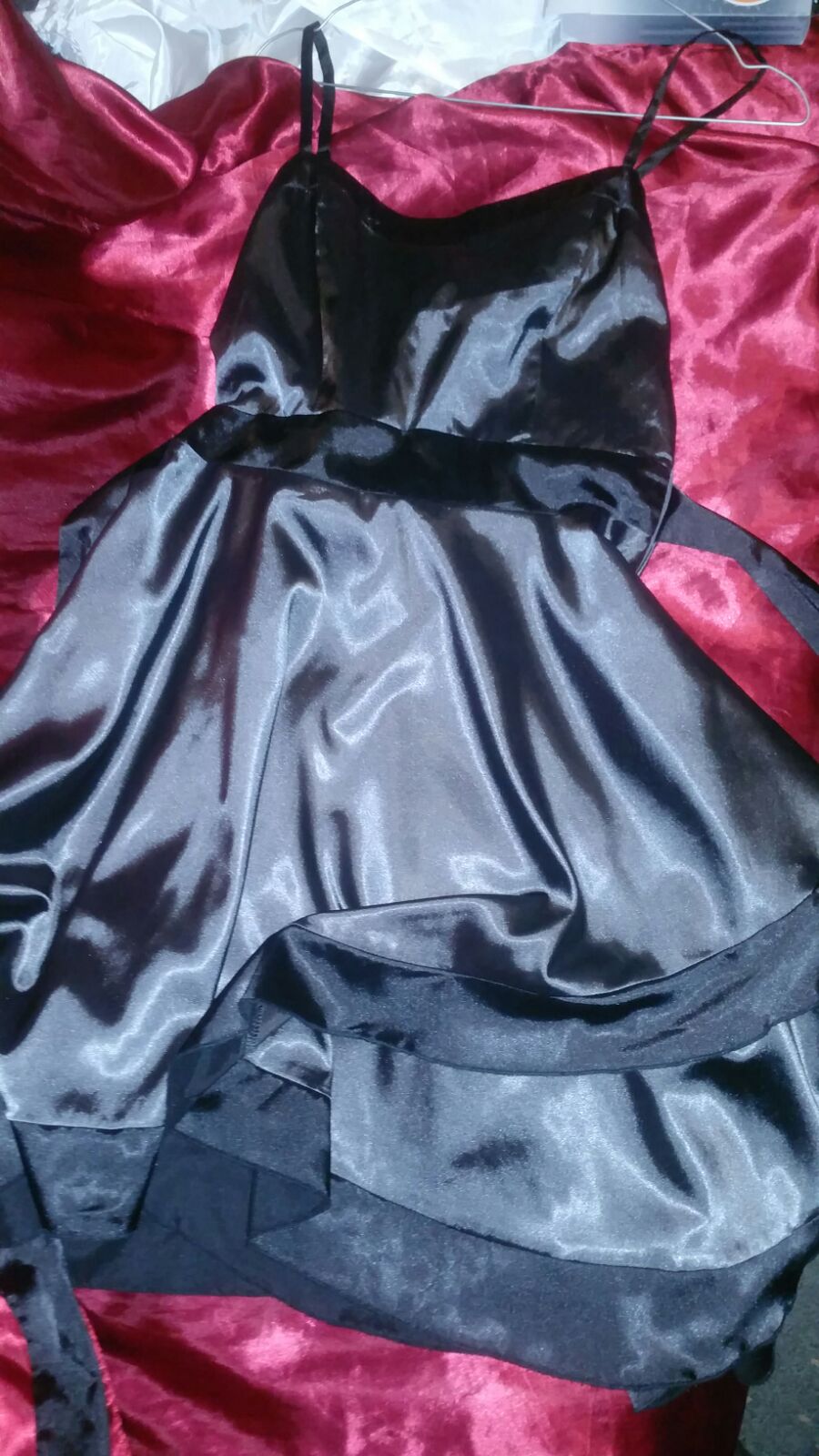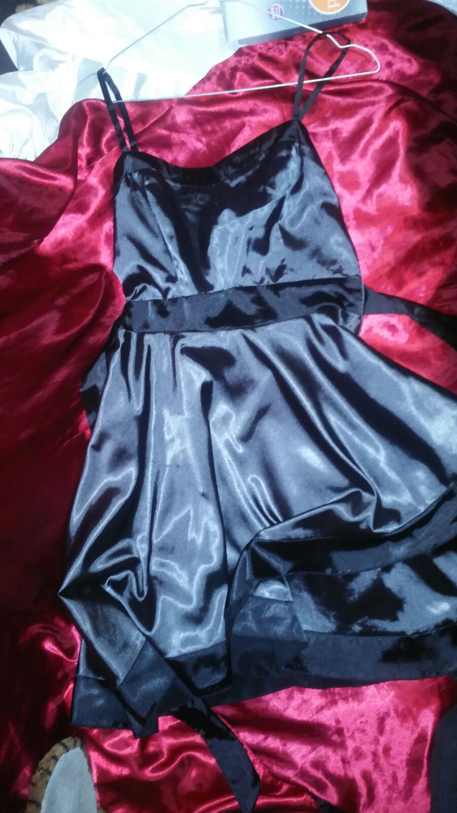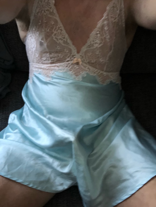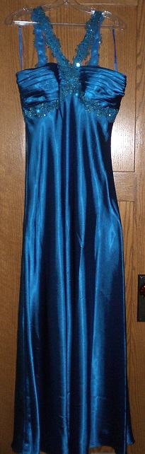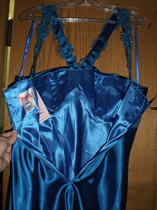 My new satin bridesmaids dress, sapphire blue. I was trembling when I took this dress out of the package today as new satin dresses get me really excited. I had to put it on right away and it just fit me! I was worried it was going to be too small. The lining is really shiny, smooth and feels insane! I like morning sex the best, so when I wake up in the morning I will be having sex with my new dress for at least 6 hours, lol!