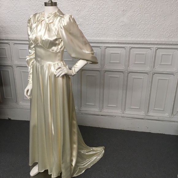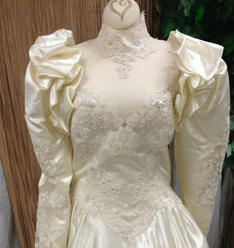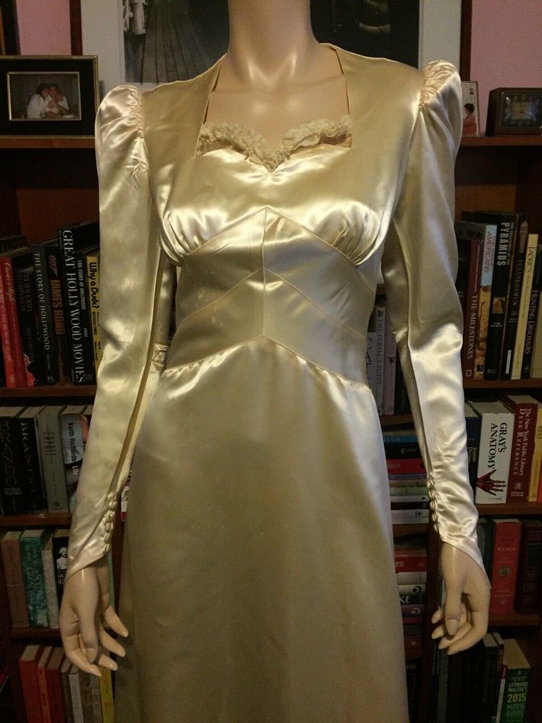 Going to fuck and cum many times with this vintage heavy satin wedding gown.