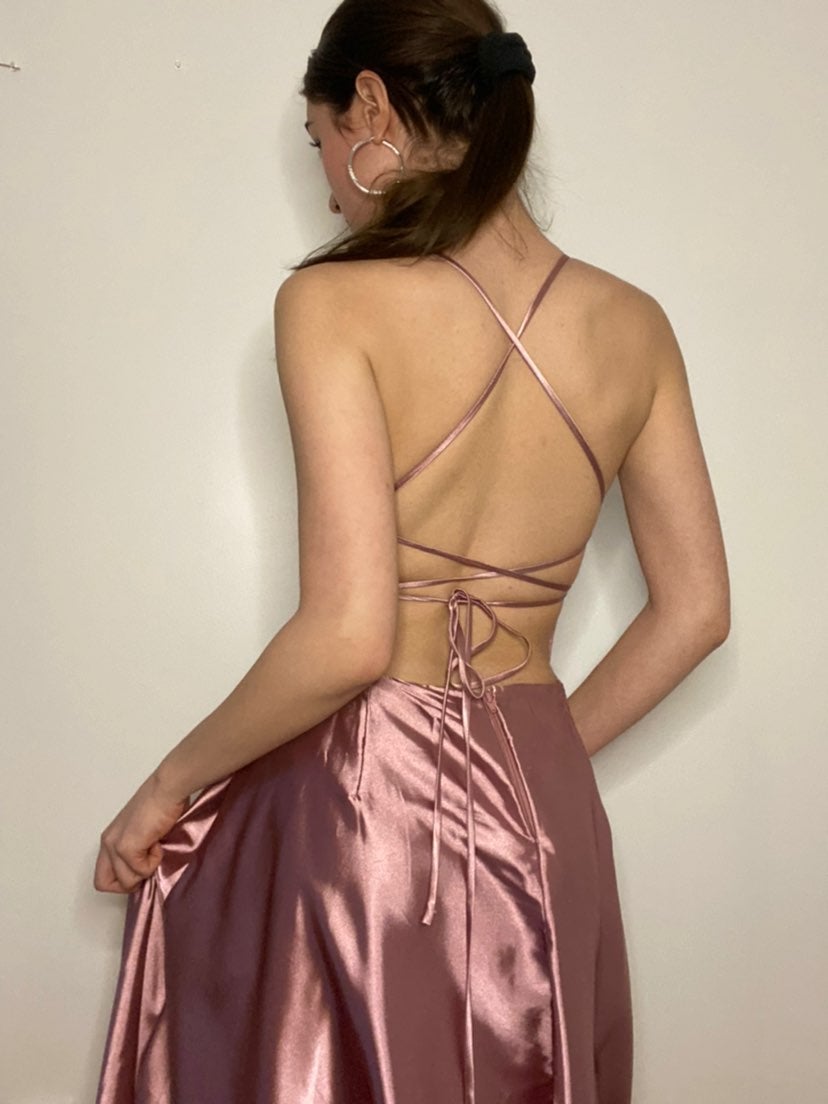 Fashion Nova pink satin & sheer lingerie bondage skank dress