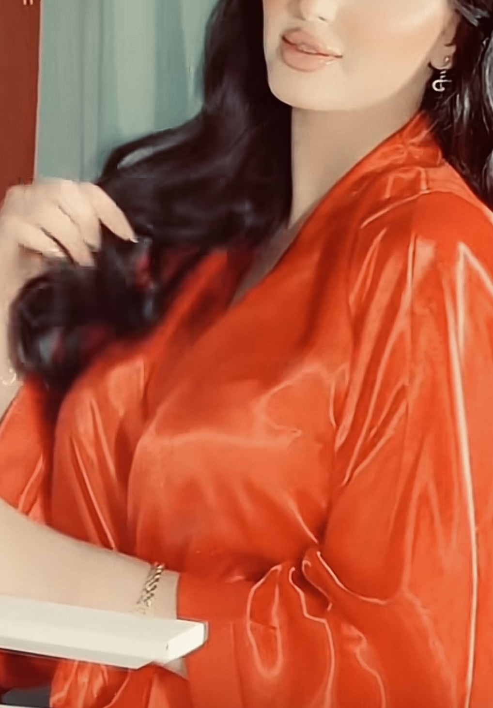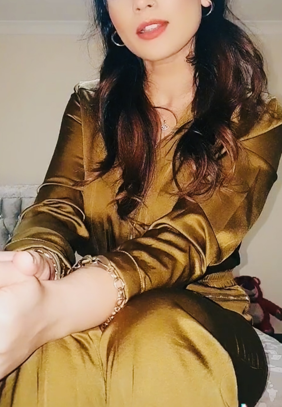 Satin babe in satin & heels