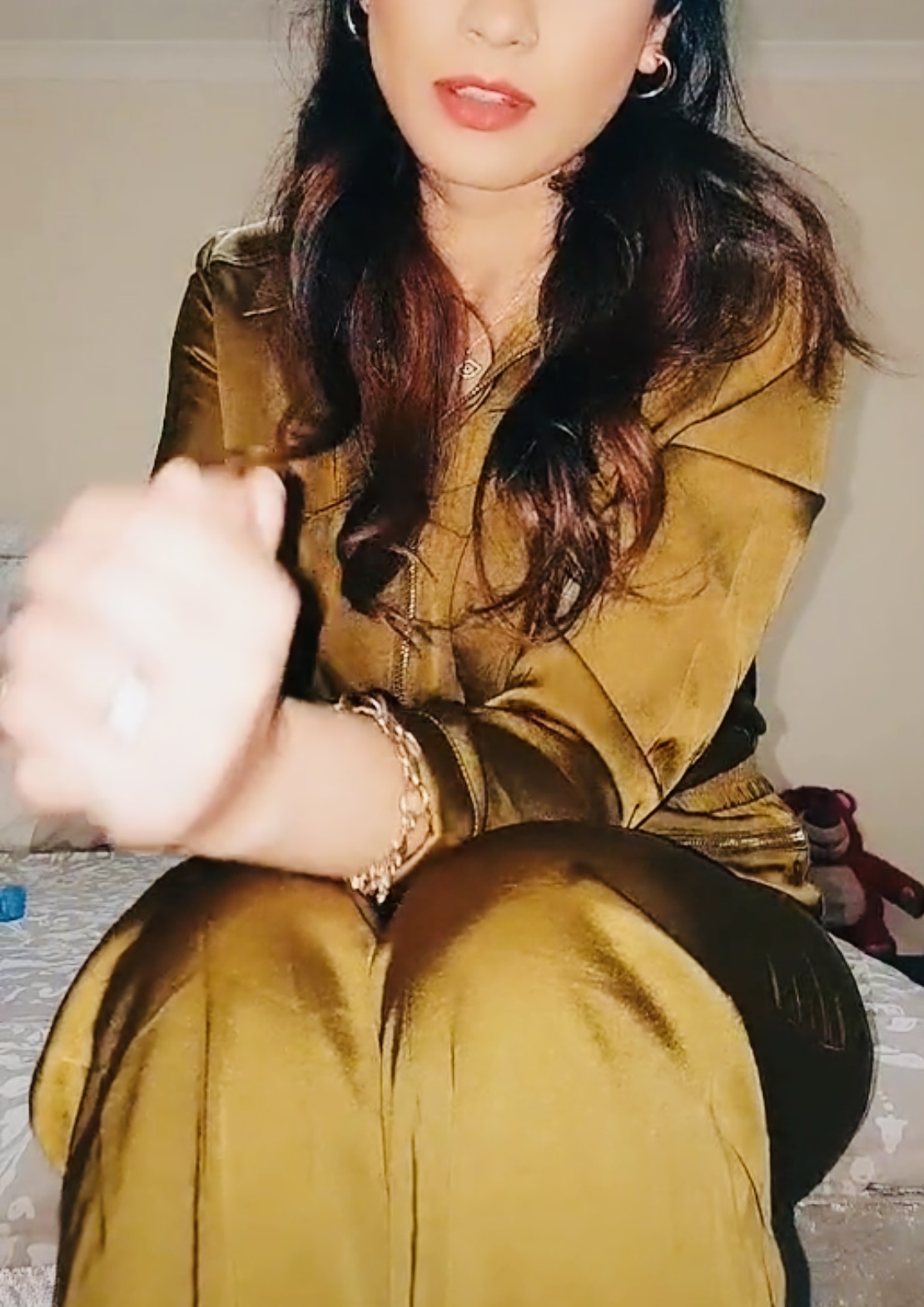 Lovely shiny satin babe rub & cum