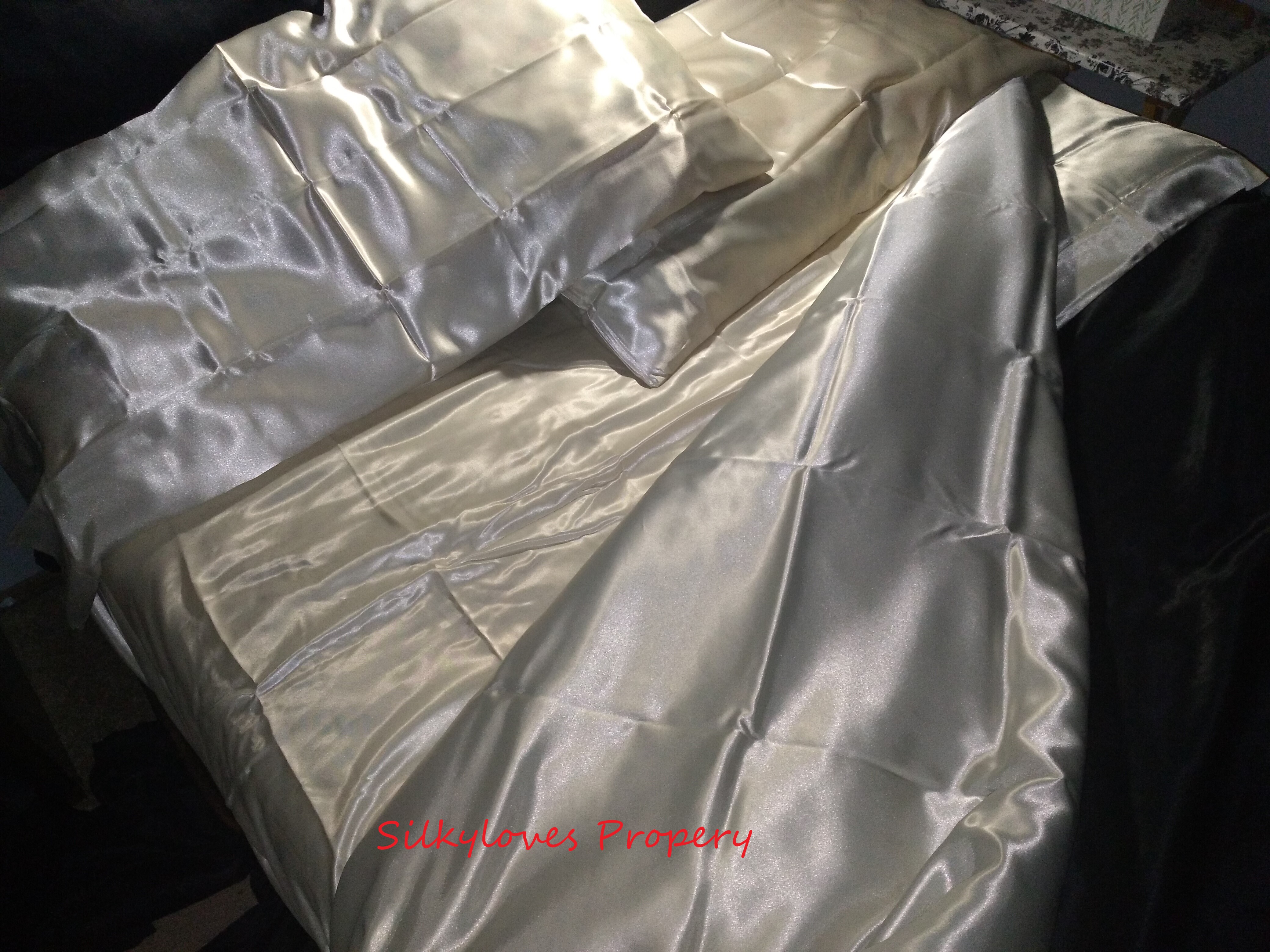 I love slipping into satin pyjamas every night and sliding into the satin sheets, so smooth and slippery, feels gorgeous and sensual. I shave my body to, when satin glides over smooth shaved skin, wow, incredible! Then getting under the satin duvet, beautiful!