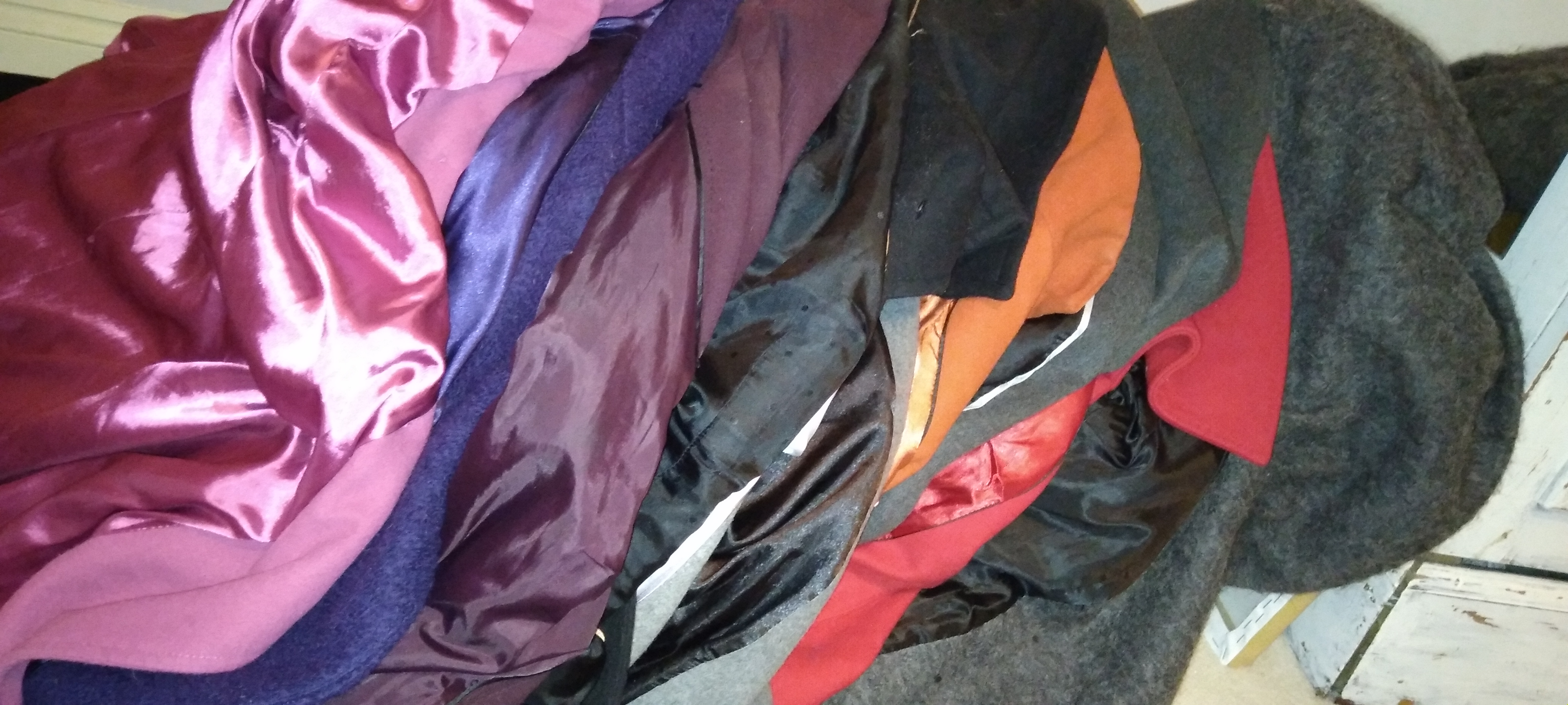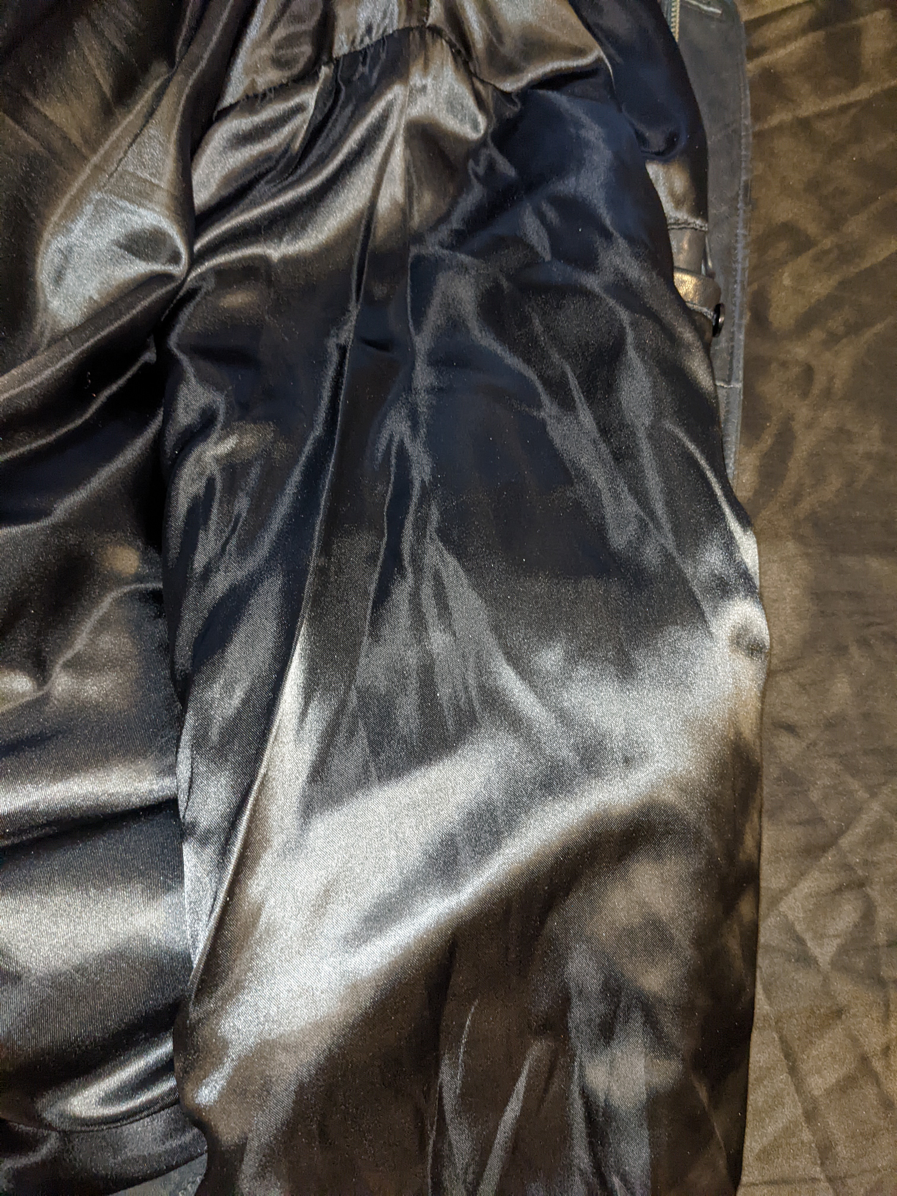 Nothing better than a thick satin lining of a coat. I have an Alfani branded leather jacket, black, with a nylon-acetate lining. I've had it for like 15 years. My current girlfriend won't give it back, she's had it in her possession since January when we went to on a dinner date. She got cold and wrapped herself up in it (it's an XXL and this gal is like a size 12) and I knew she liked the way it felt on her because she kept undulating her naked arms in it as all she had on that night was this black dress that showed off her curve. Of course I wanted to savagely fuck her and that coat and got her that night and the coat wound up in her closet. I hadn't asked for it back because it's still hot as fuck. But don't worry, it will be wrapped around my shaft and I'll be spewing all over that naughty satin lining with globs of my hot cum. Especially after the way I fucked her that night, kept thinking about her body in satin. The dress she wore was nice but not silk or satin- I didn't care, she wore my coat and looked fine as fuck in it so she got the prize and took everything in my balls.