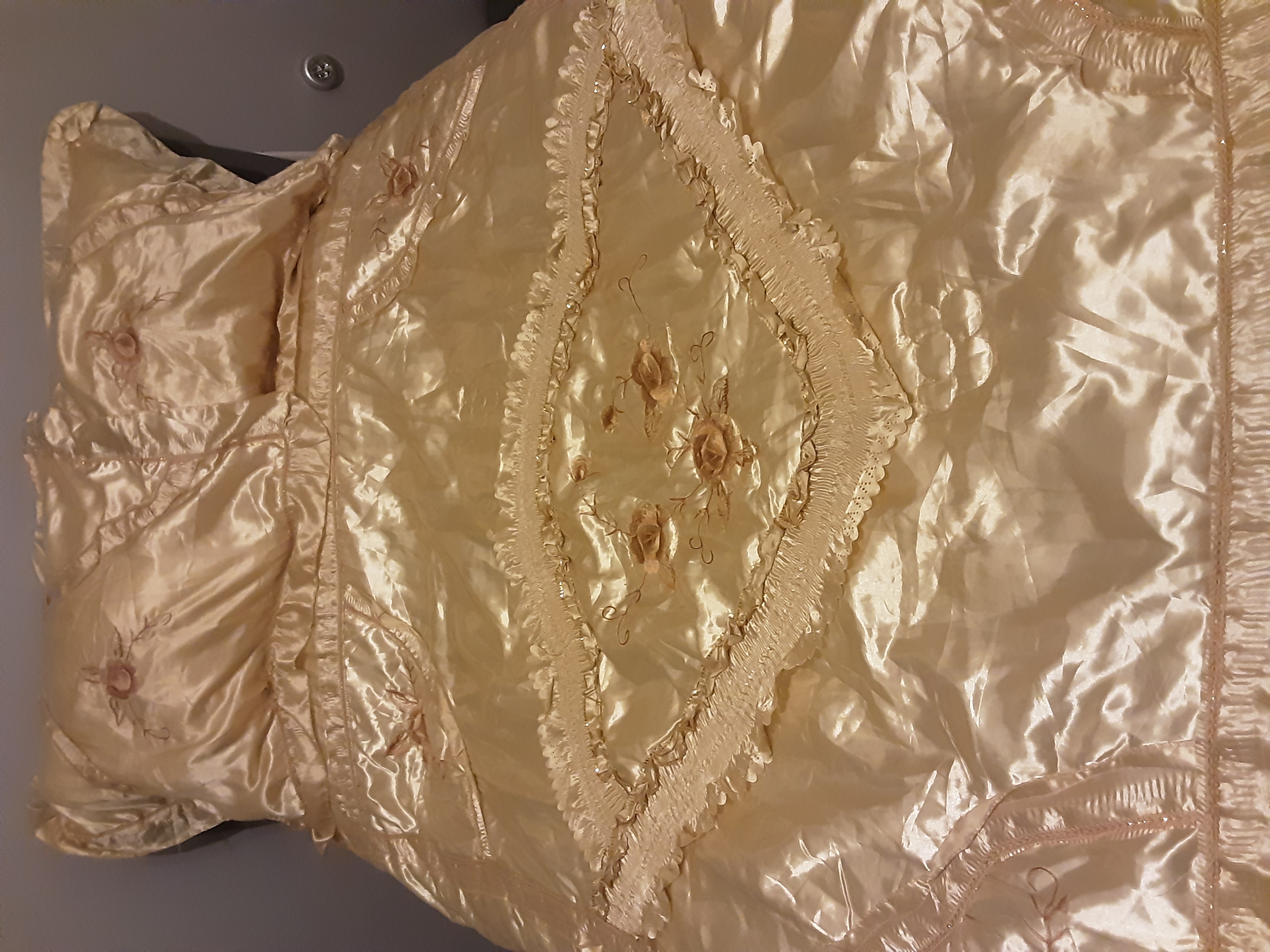 That is some wonderful bedspread and pillows. You are so lucky! I would so slip and slide all over that bedspread and put one pillow on top of the other and thrust my cock between them. I don't think I could contain myself!!
