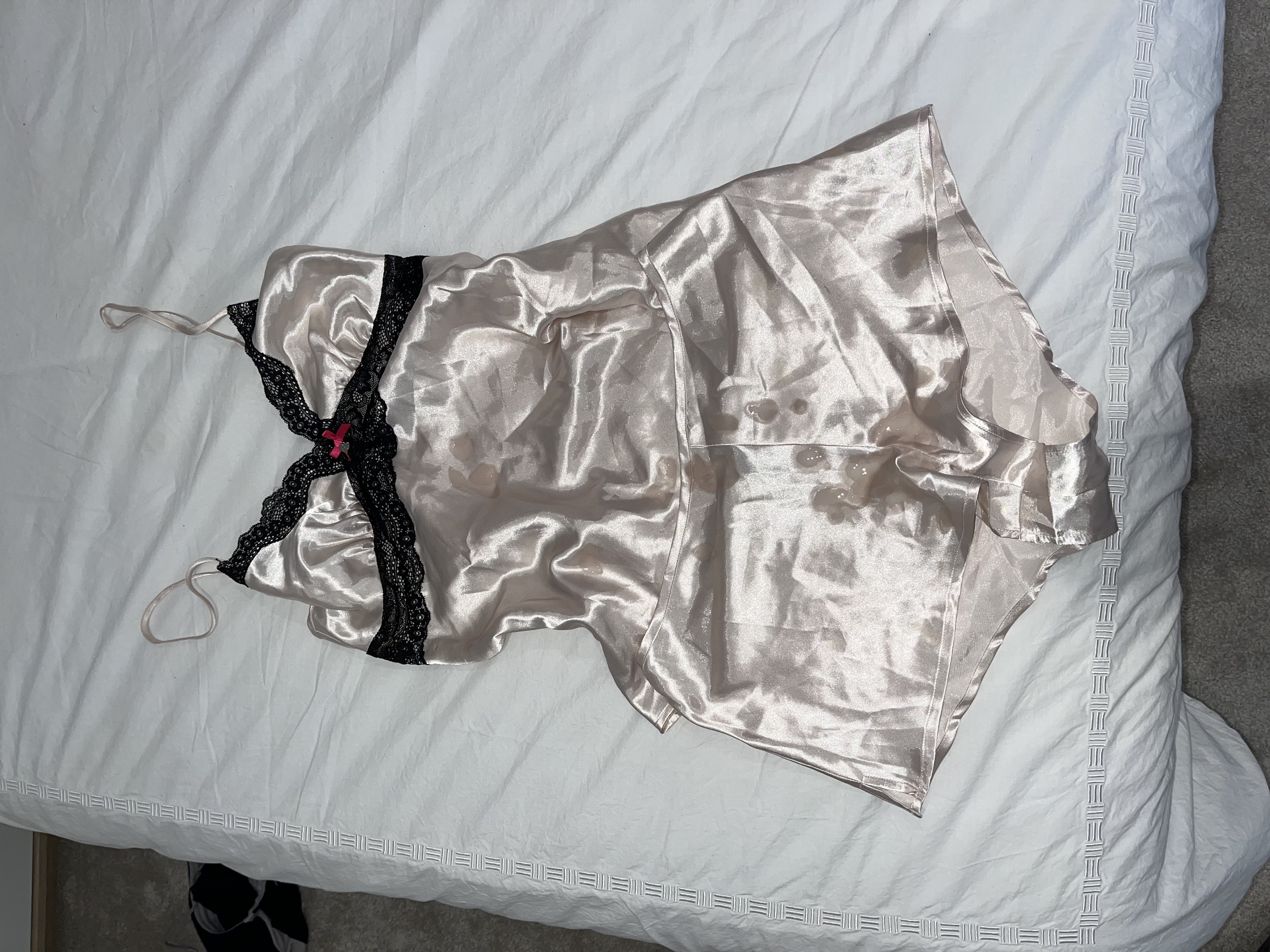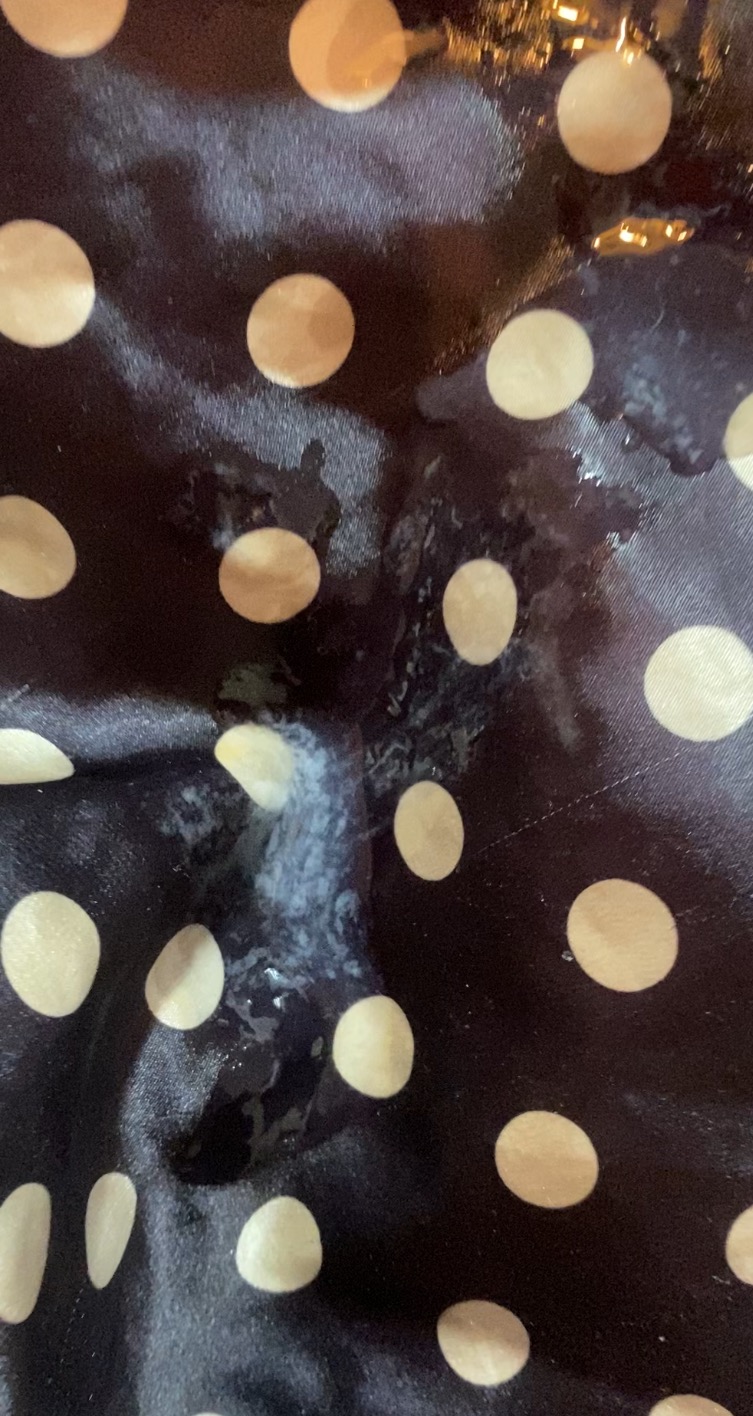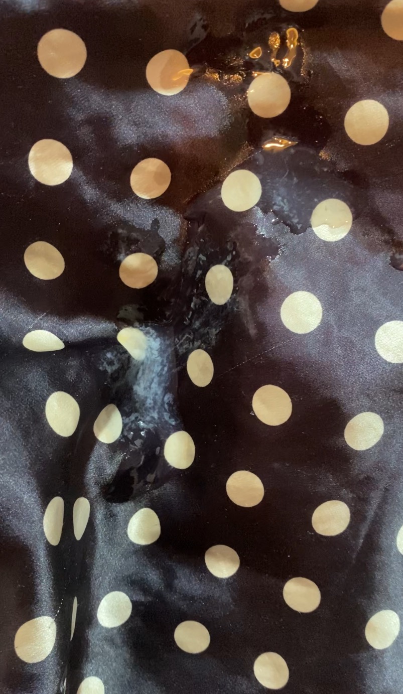 Fantastic cum load on your satin nightie, looks like you had some great fun…