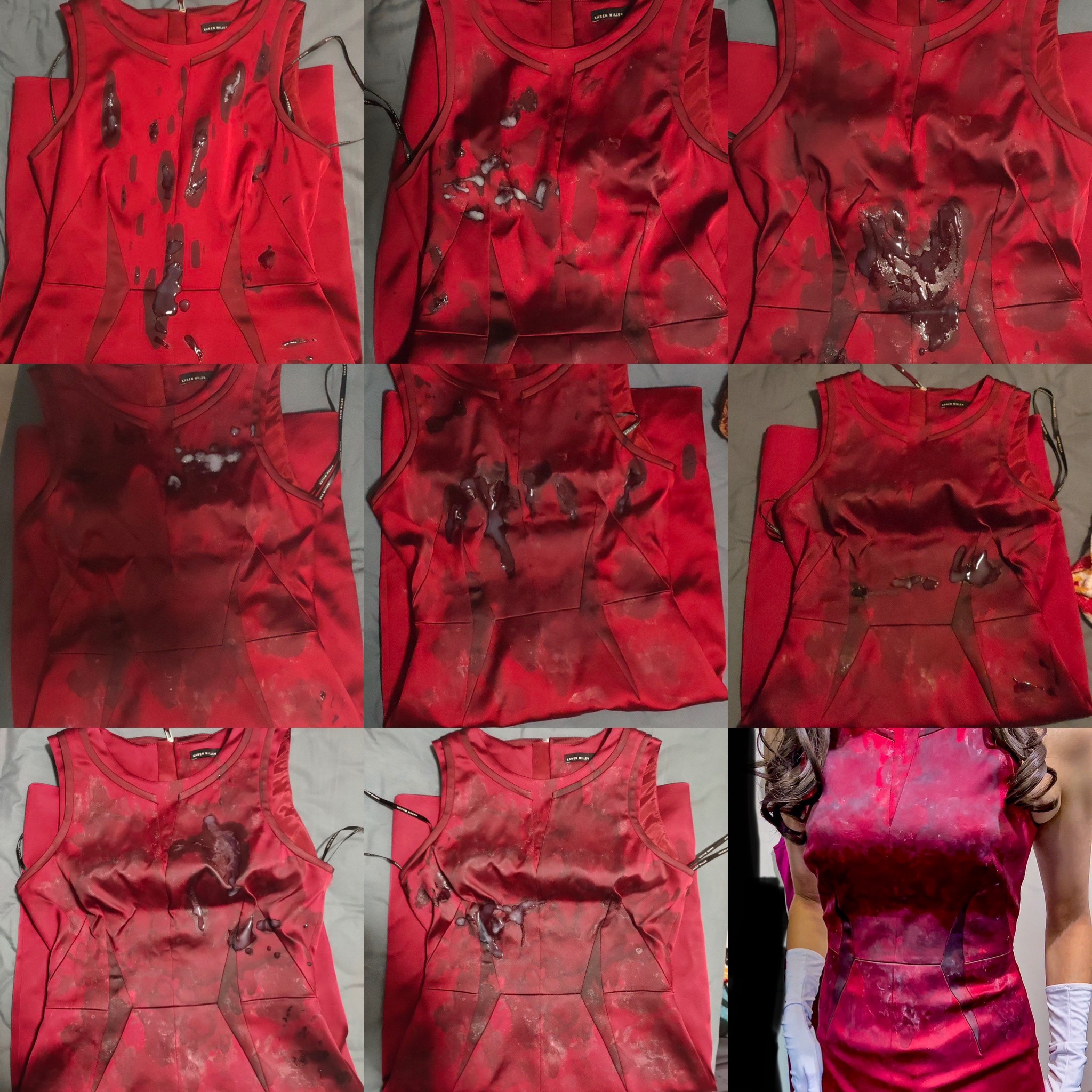 Wow, nice work. I would love to see that silky lining of that Karen Millen FUCK ME dress soaked with a blowload.