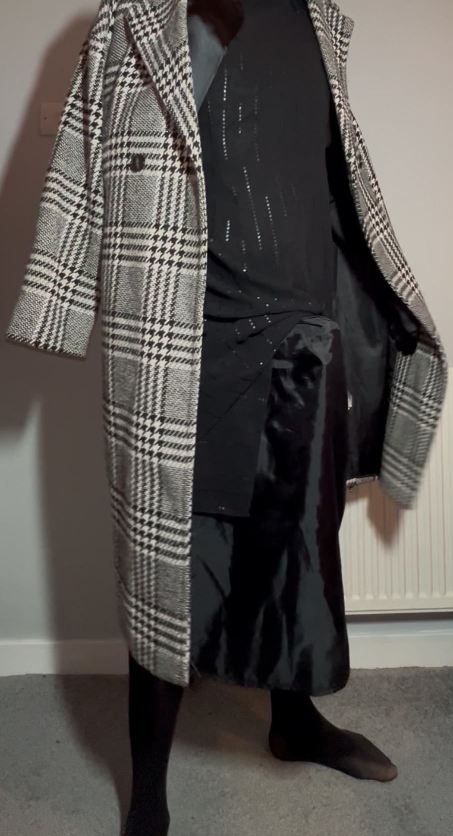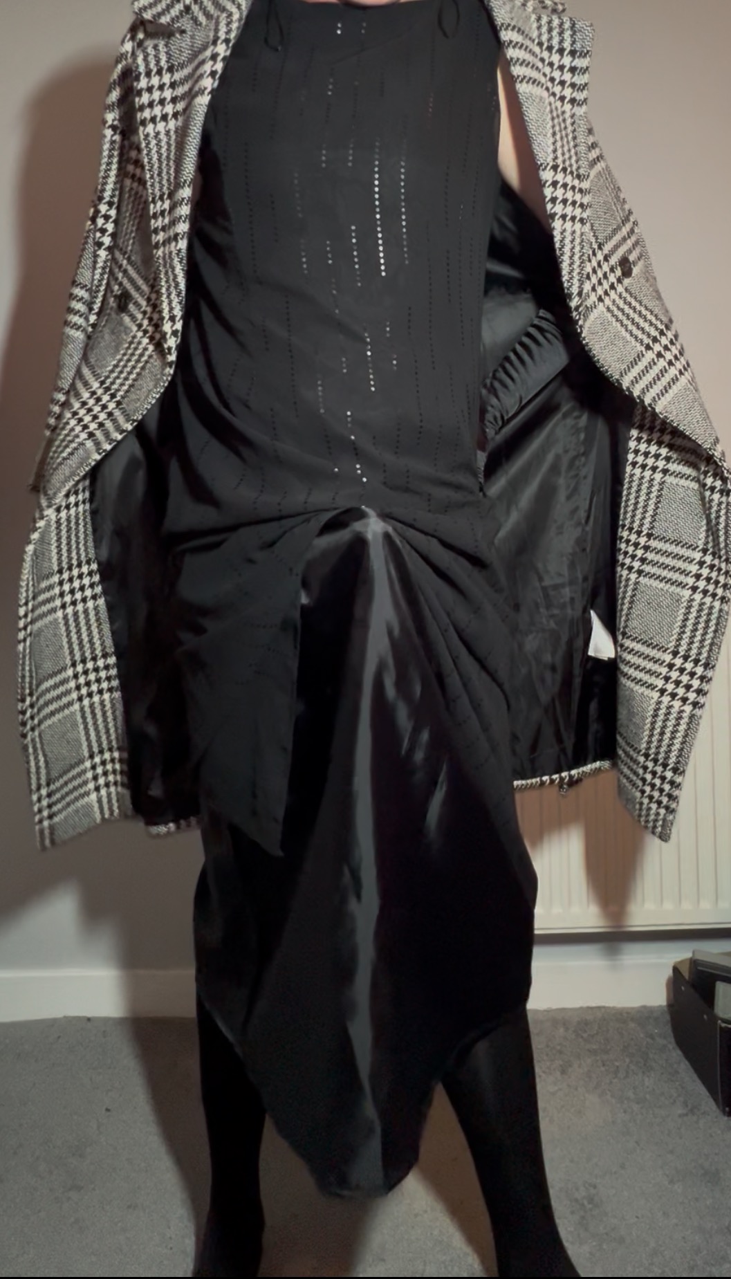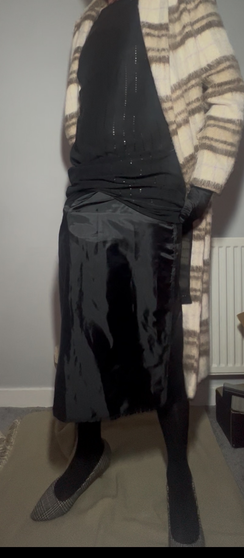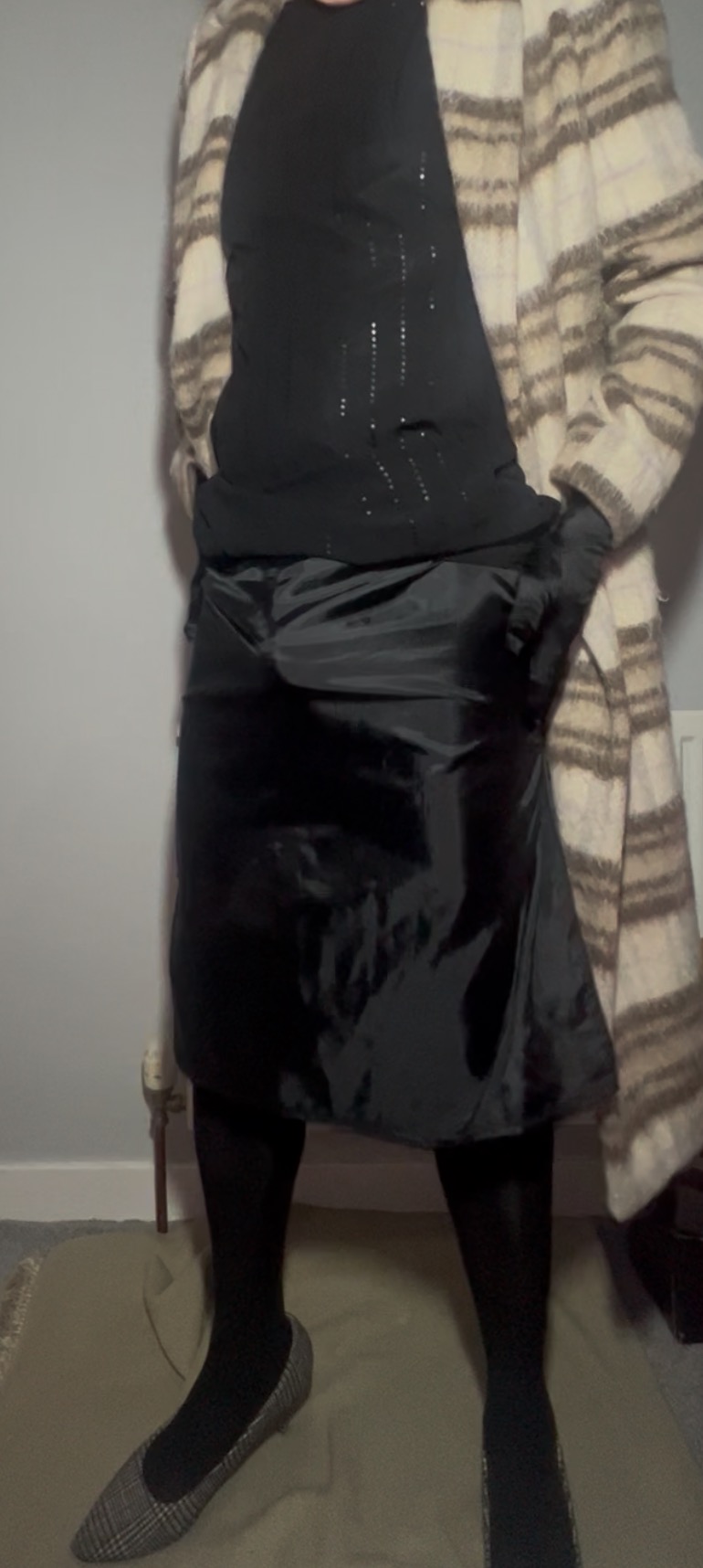 Lovesatin01 wrote: Sun Oct 05, 2025 1:27 pm Here’s some pics of me bulging in my new dress and coat.
