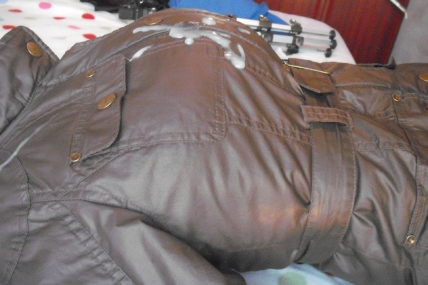I have many more photo's of cum on the outside of this babes jacket too following a good wank in the sleeve lining, however the outer shell is not satin so may not be appropriate to post on here but I think it looks real sexy splattered with hot spunk, let me know wheteher I should post them here as I don't want to break any forum protocol :D