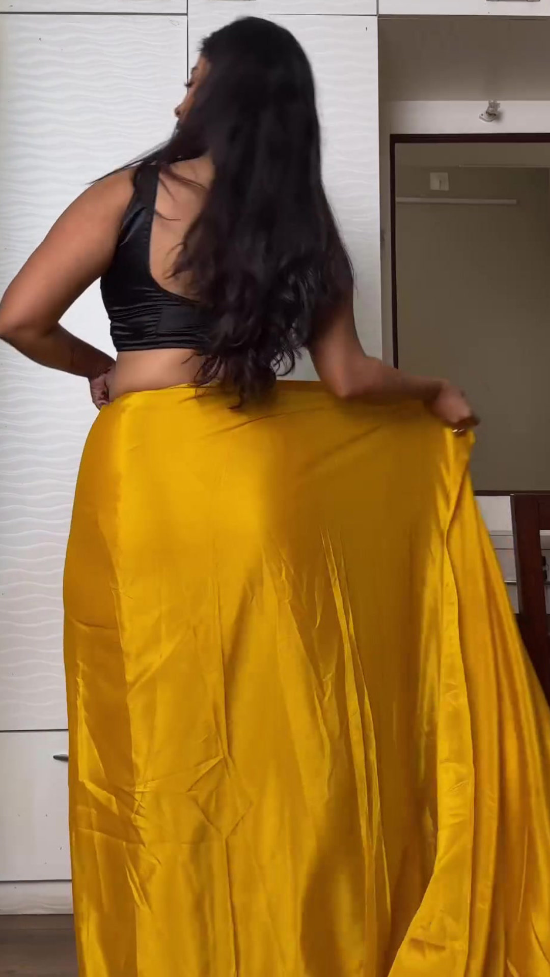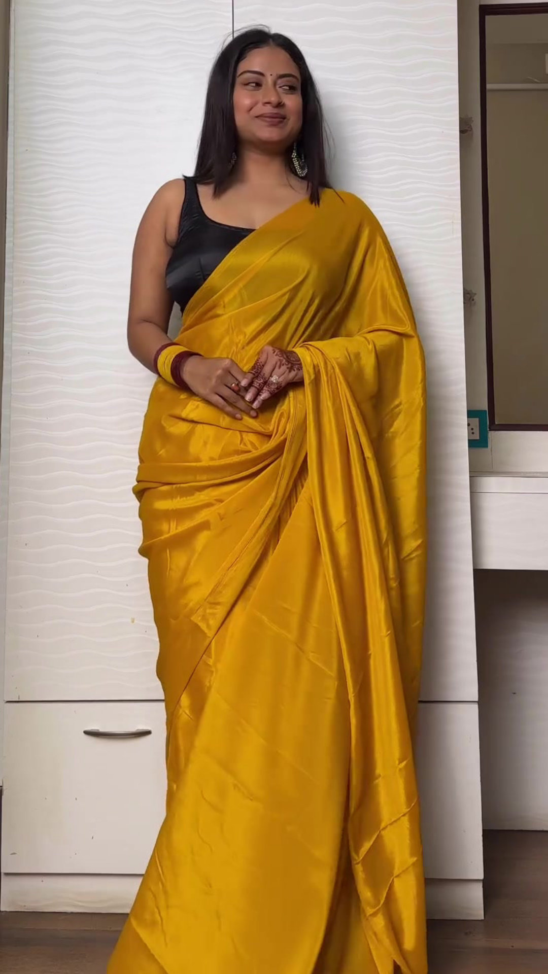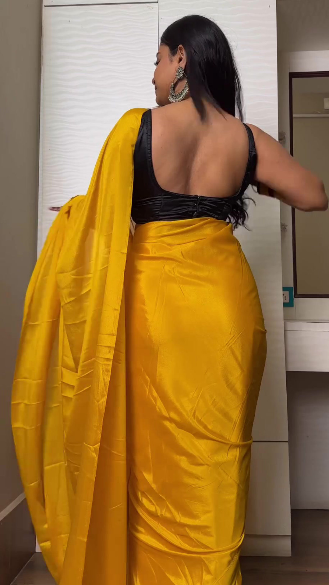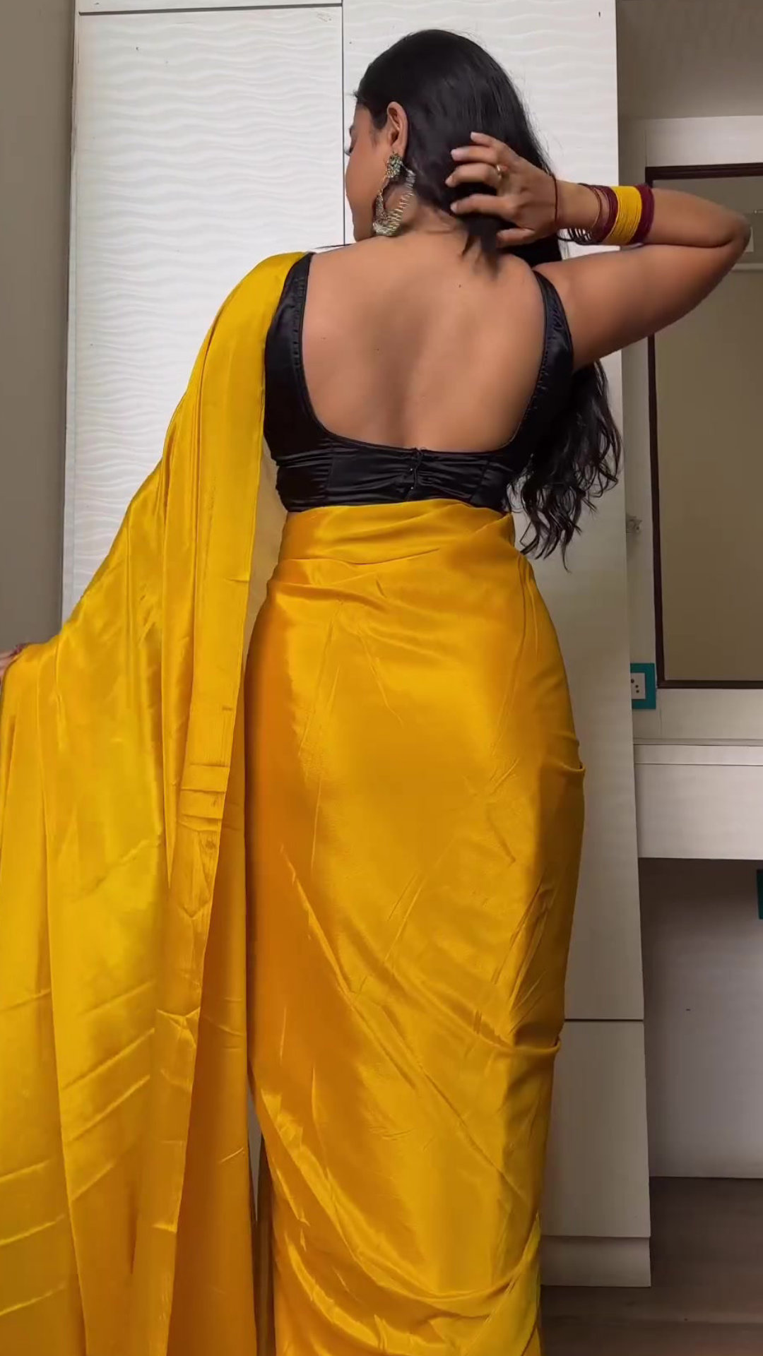 Yellow satin saree