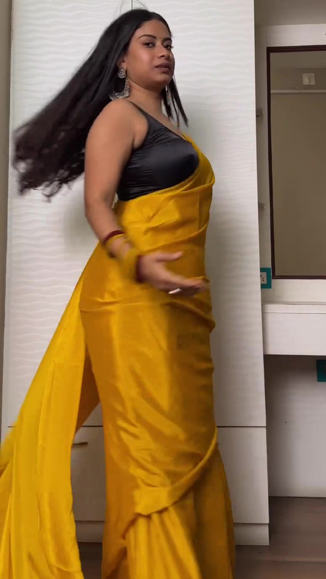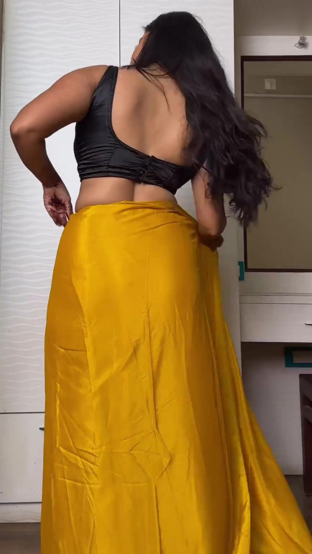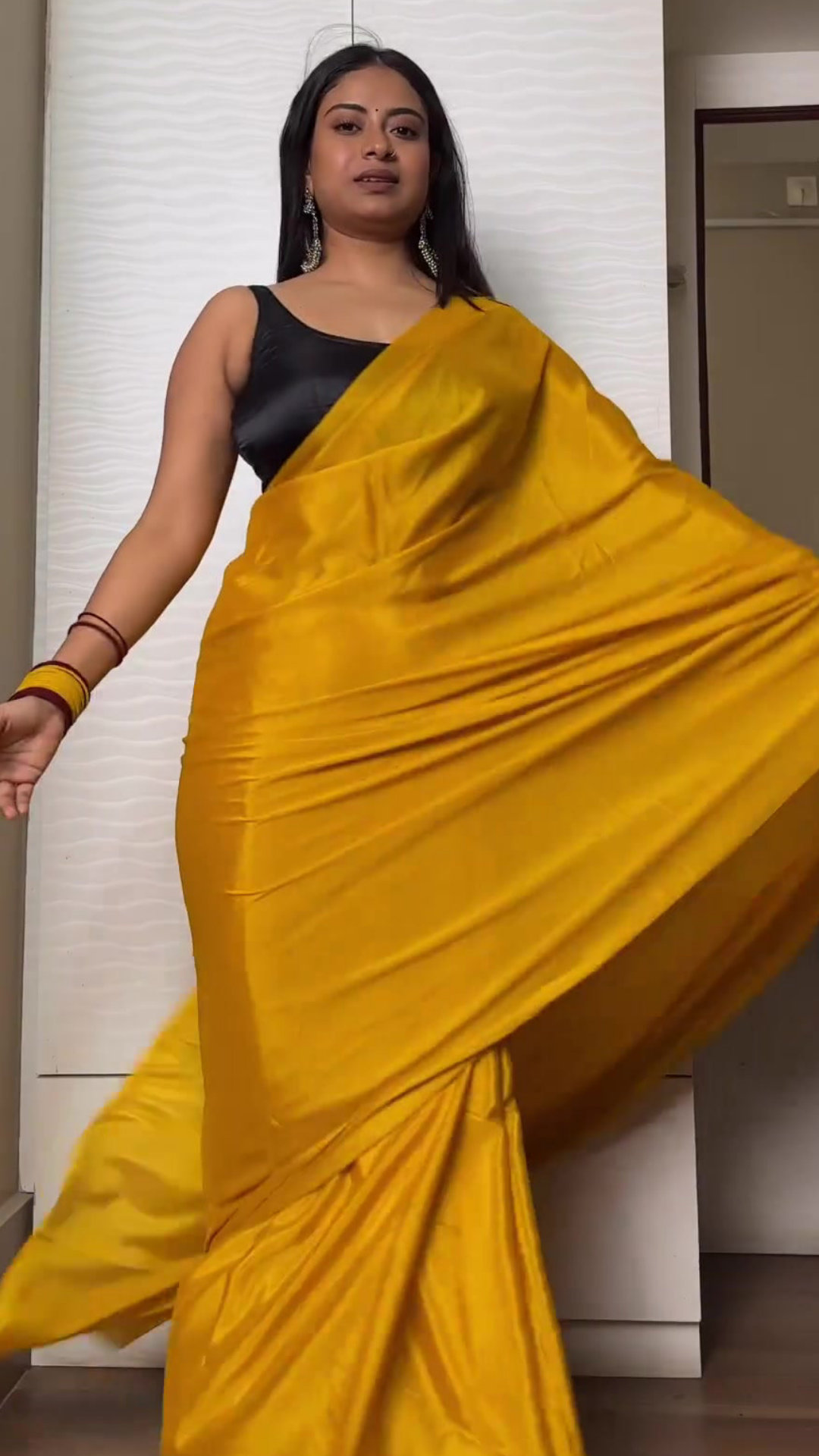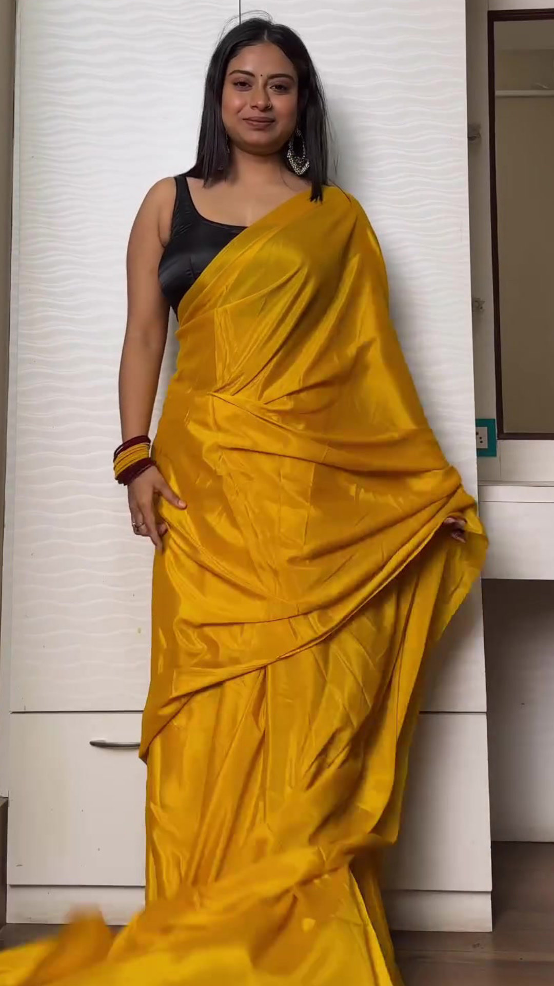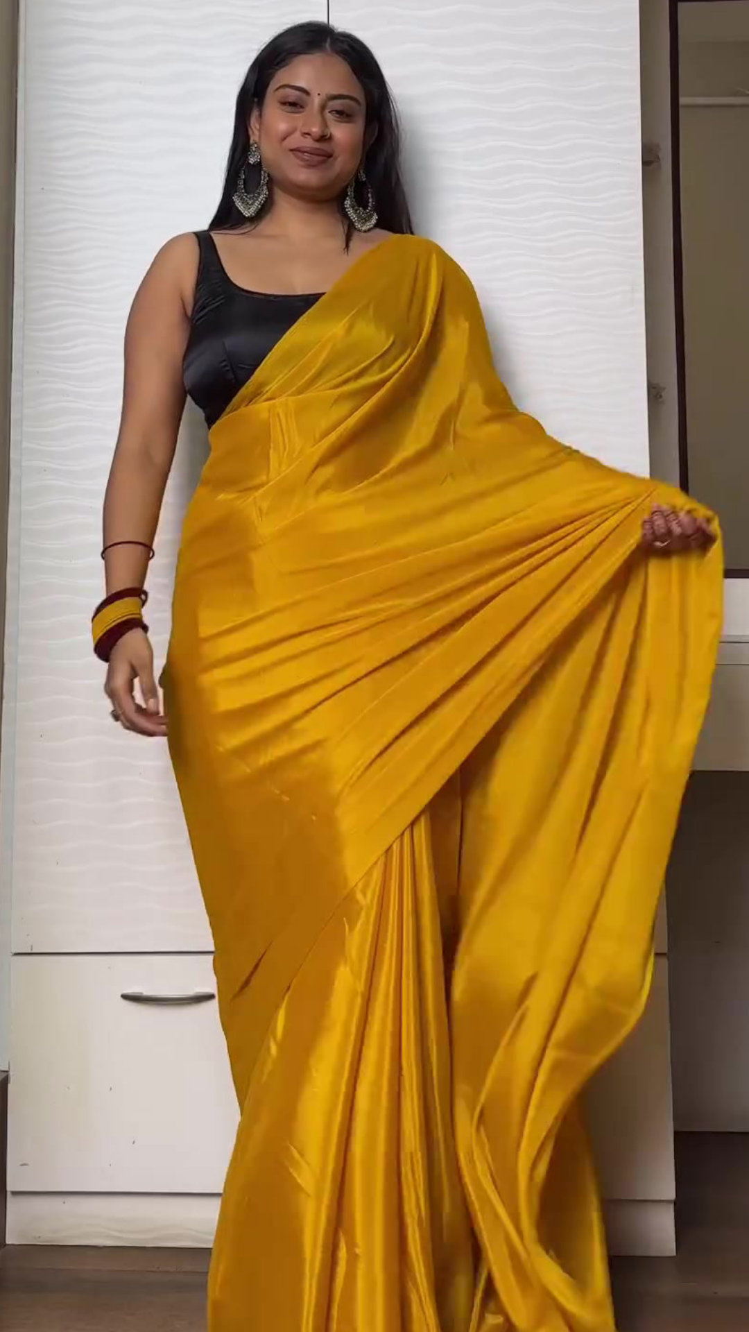 Yellow satin saree
