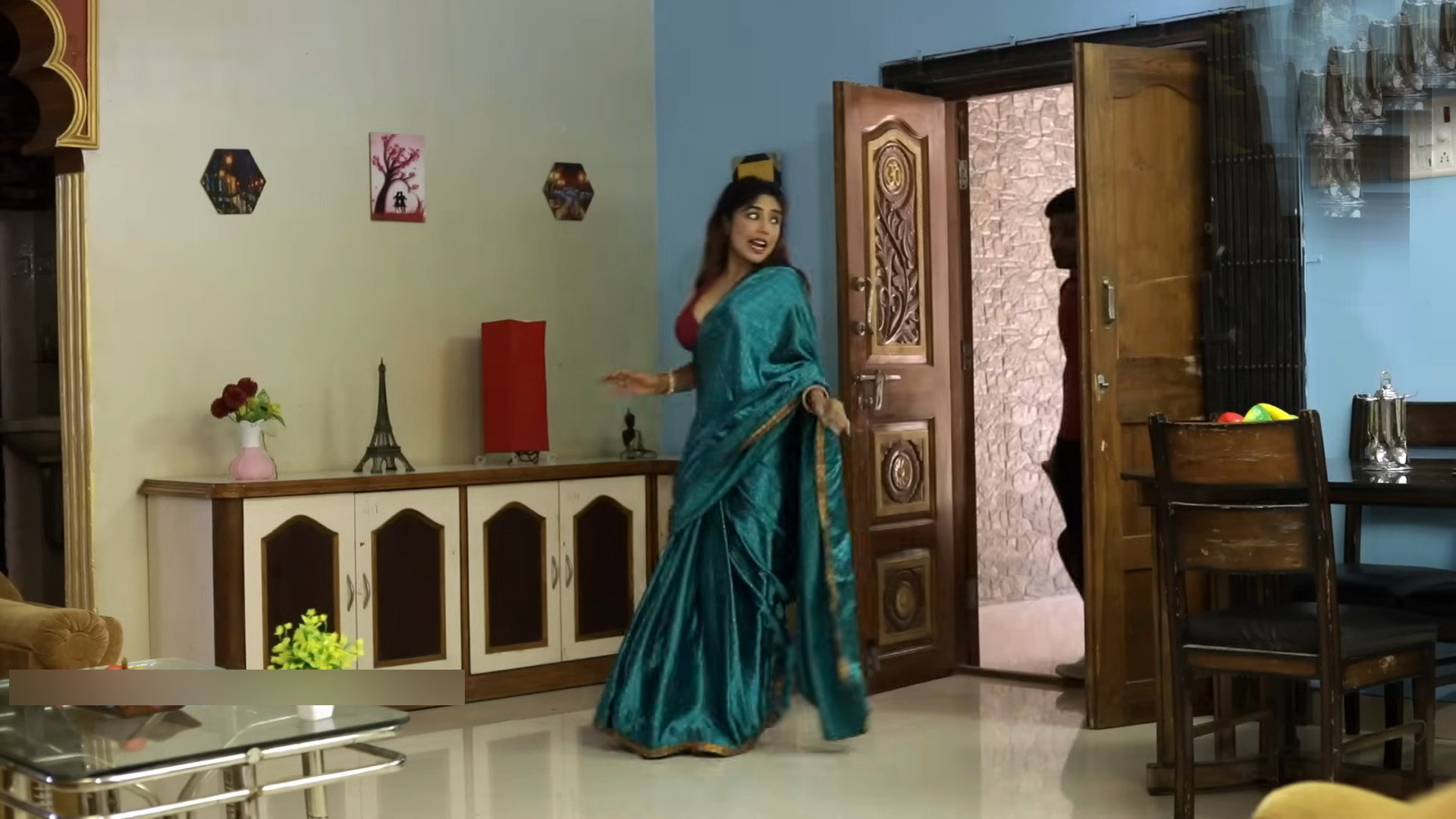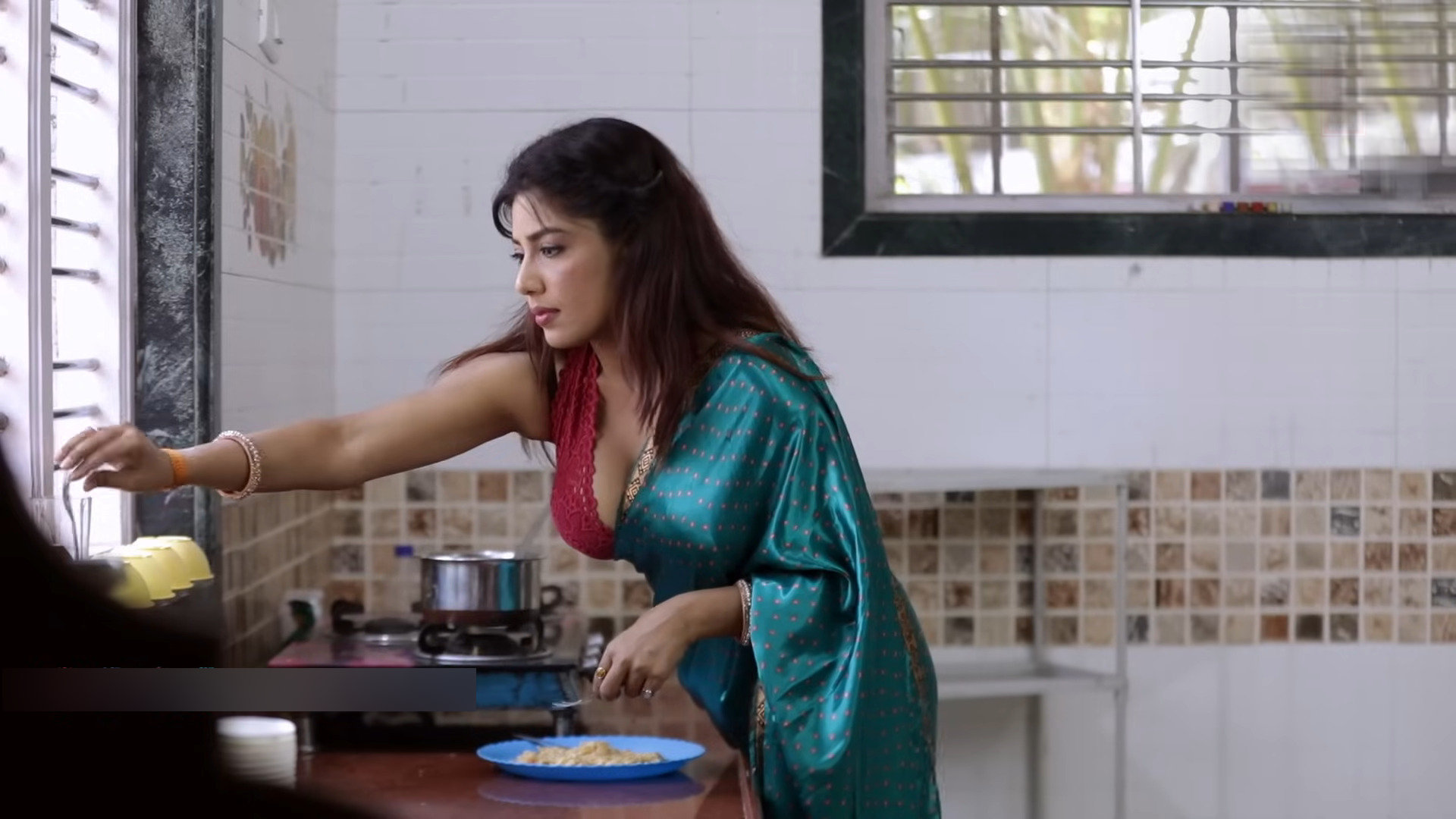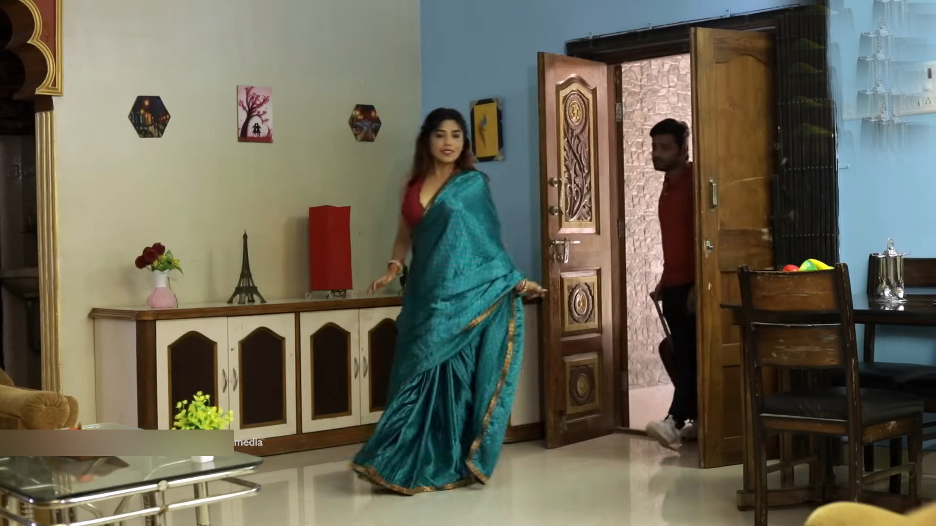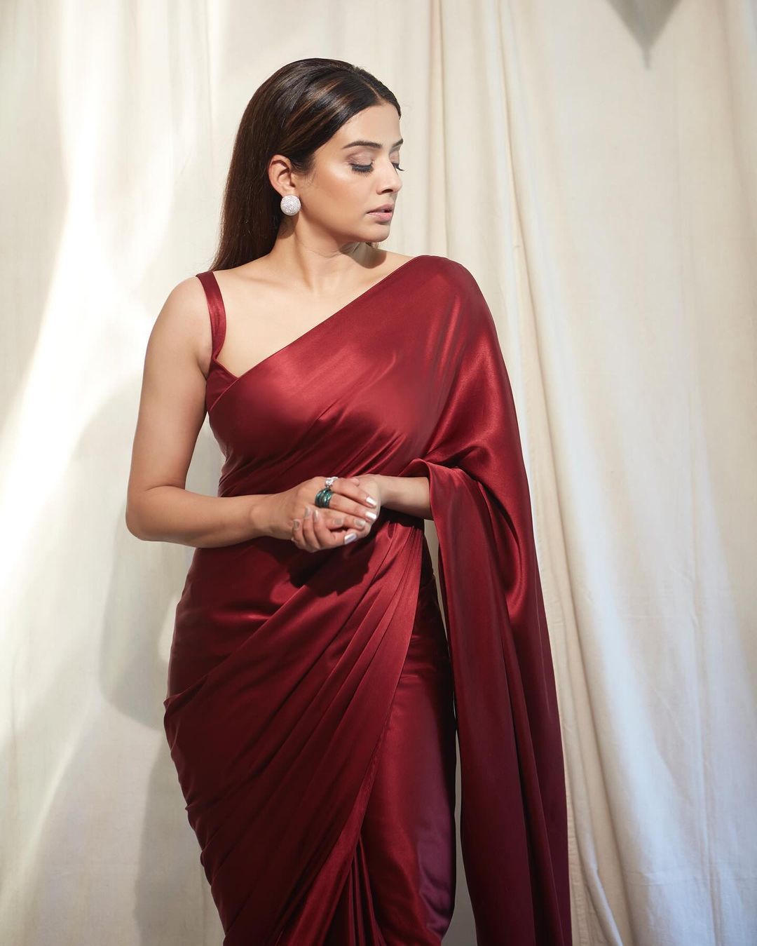 Yellow satin saree