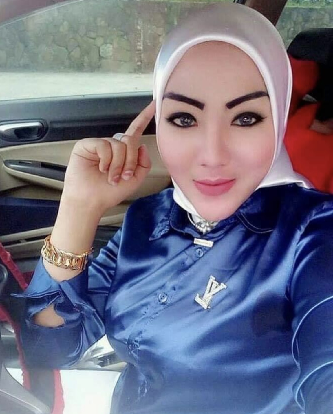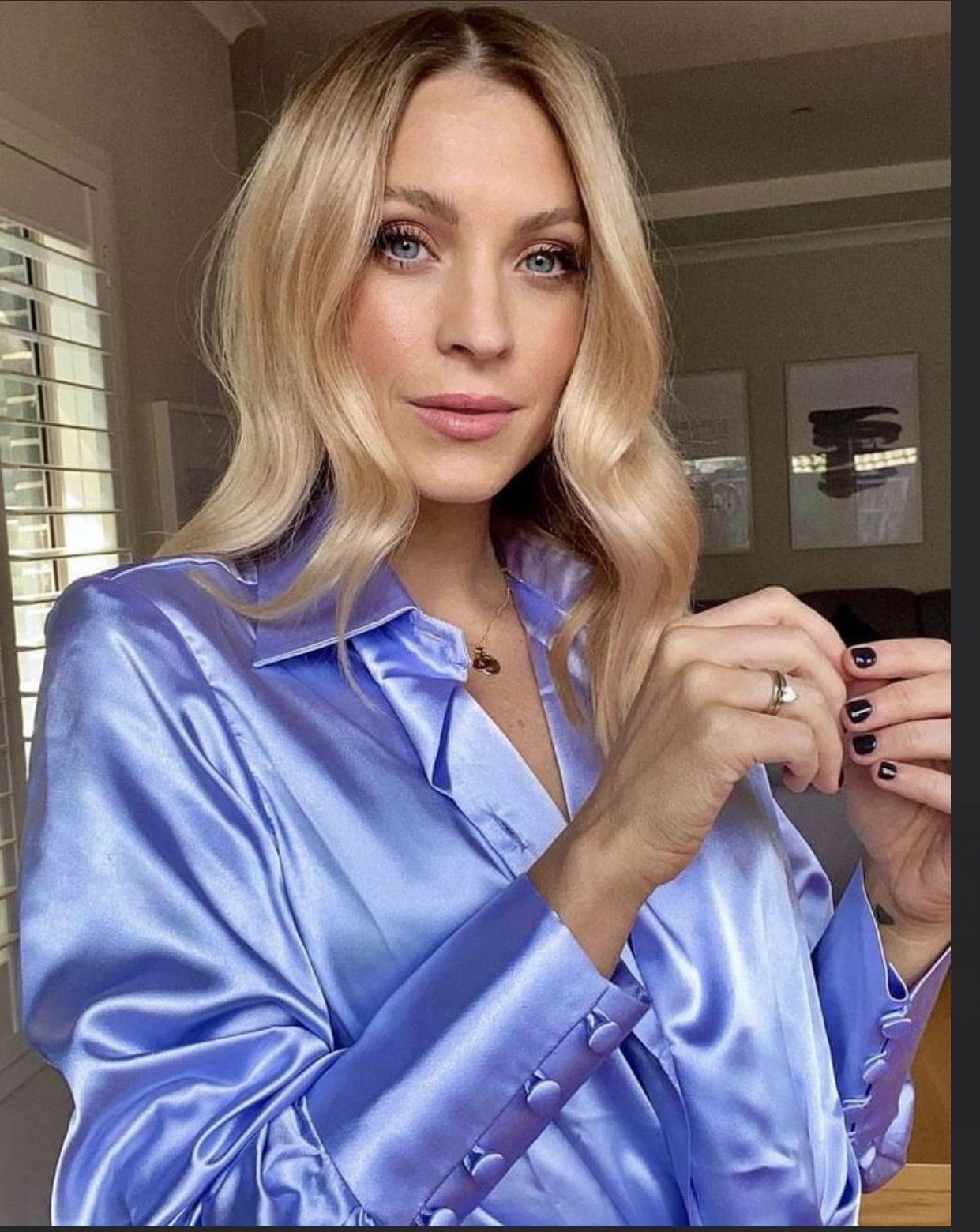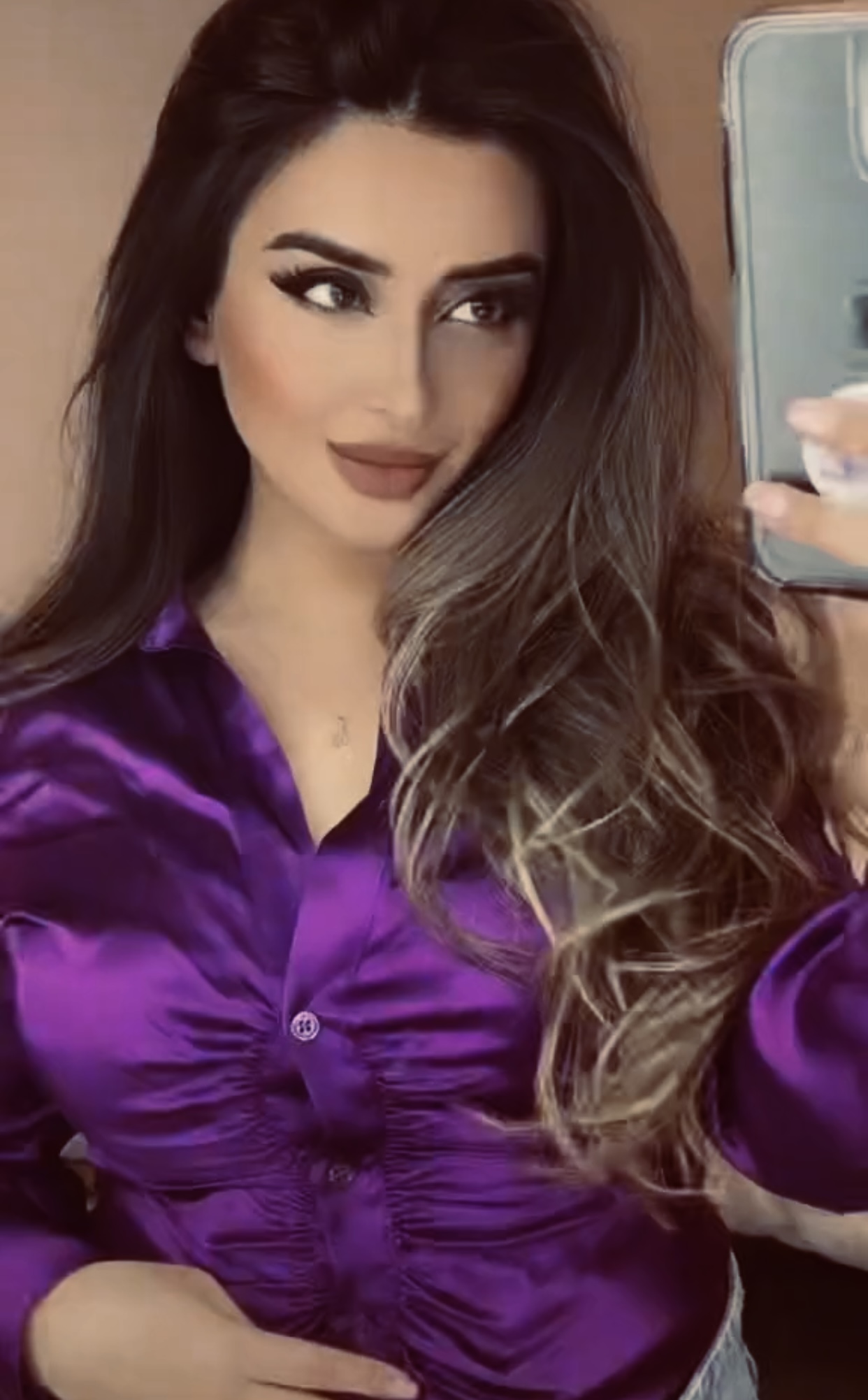 Purple satin shirt selfie