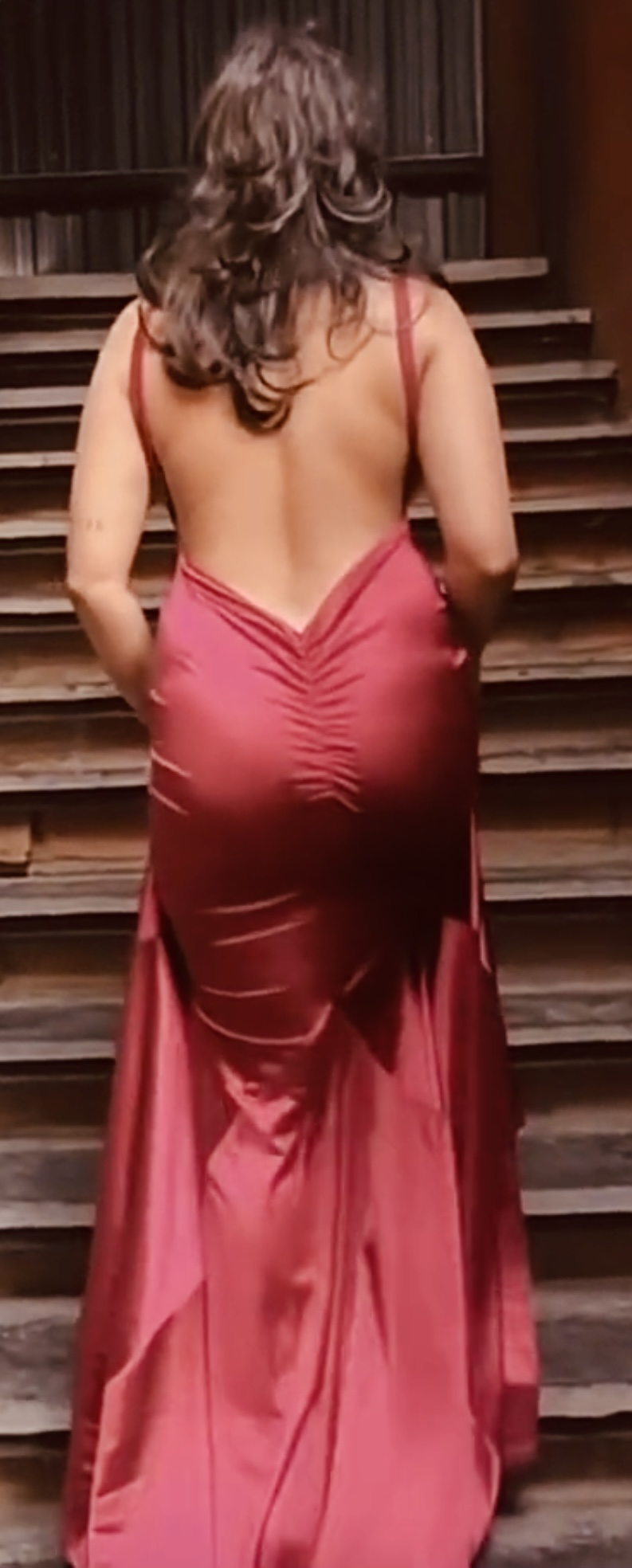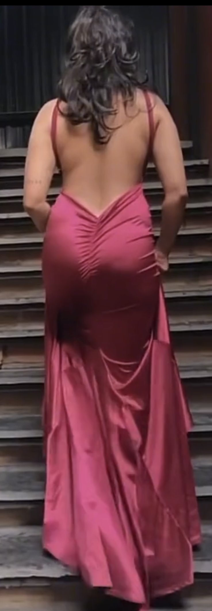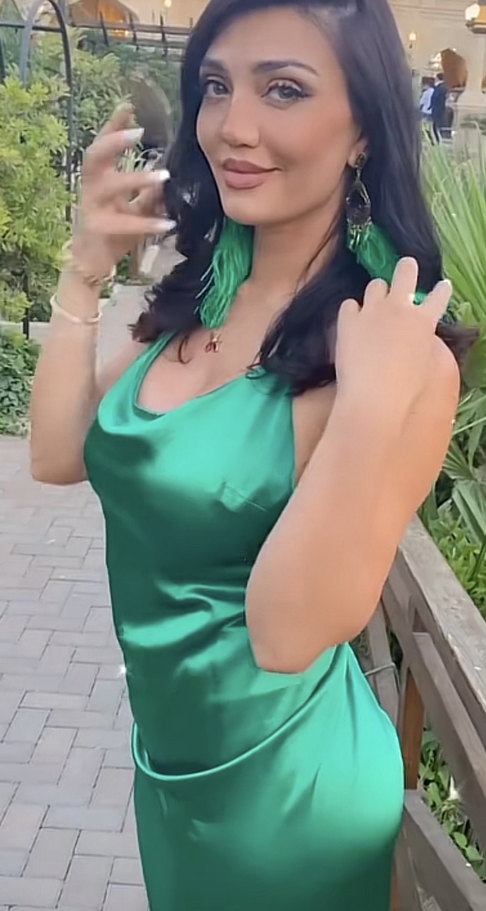 Gorgeus babe in green satin .. just imagine you are walking behind her ..