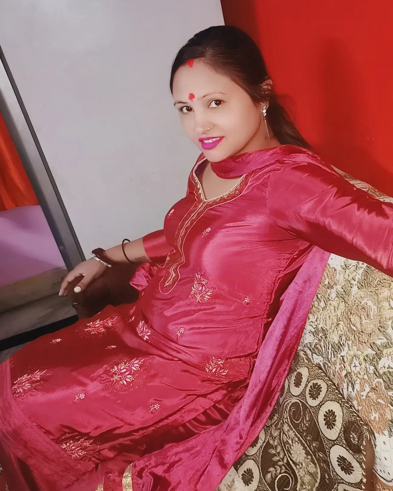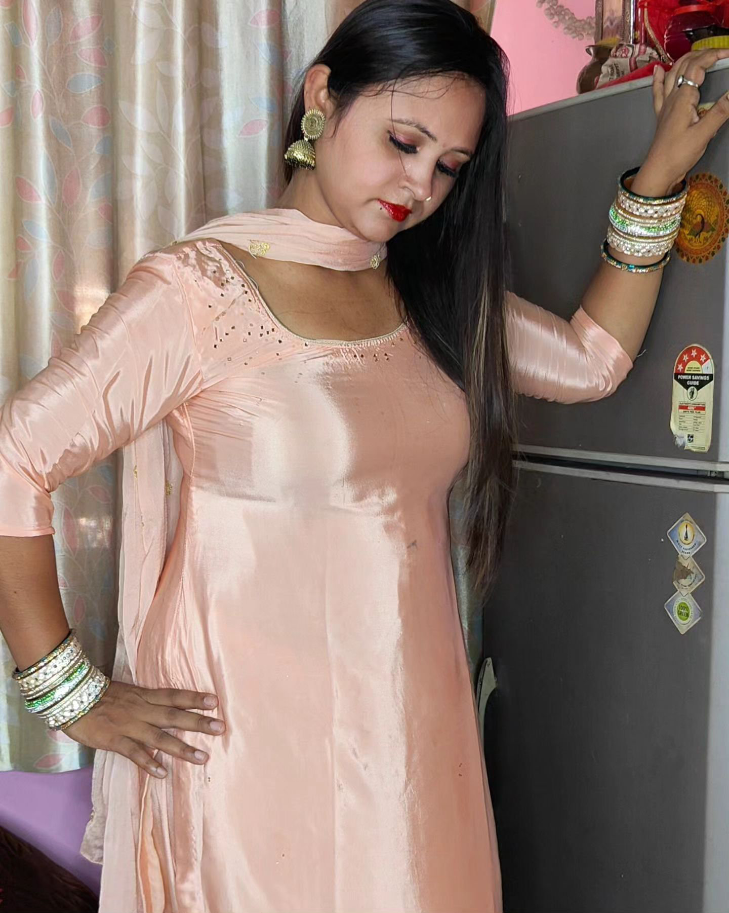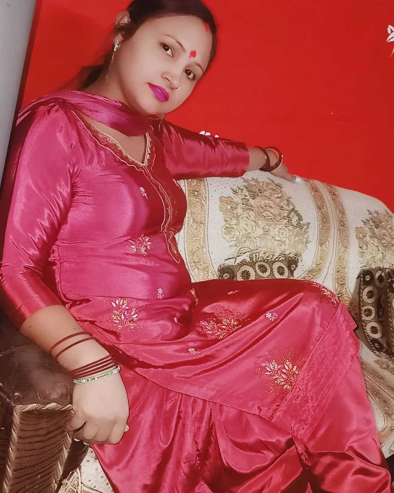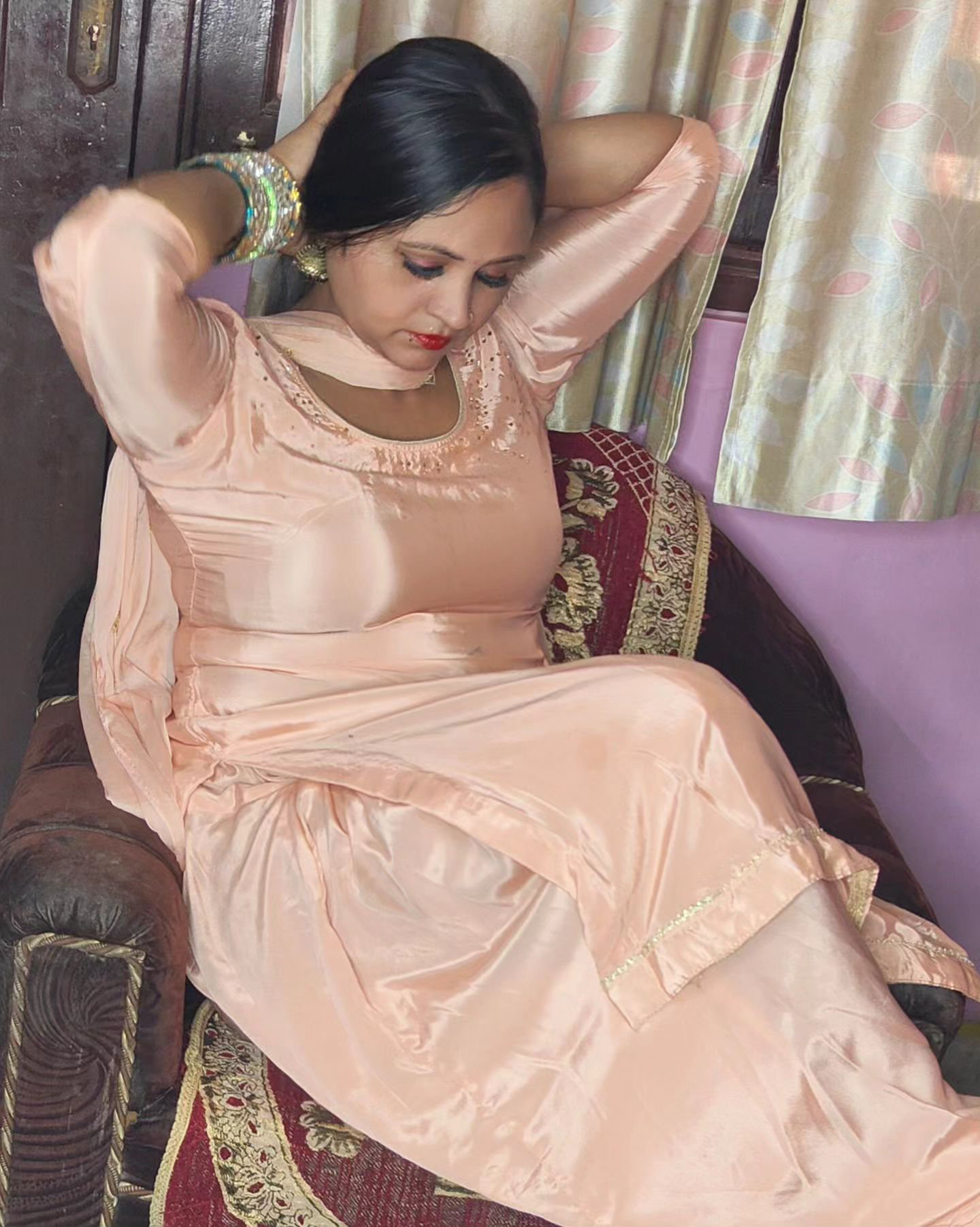 Pink satin salwar