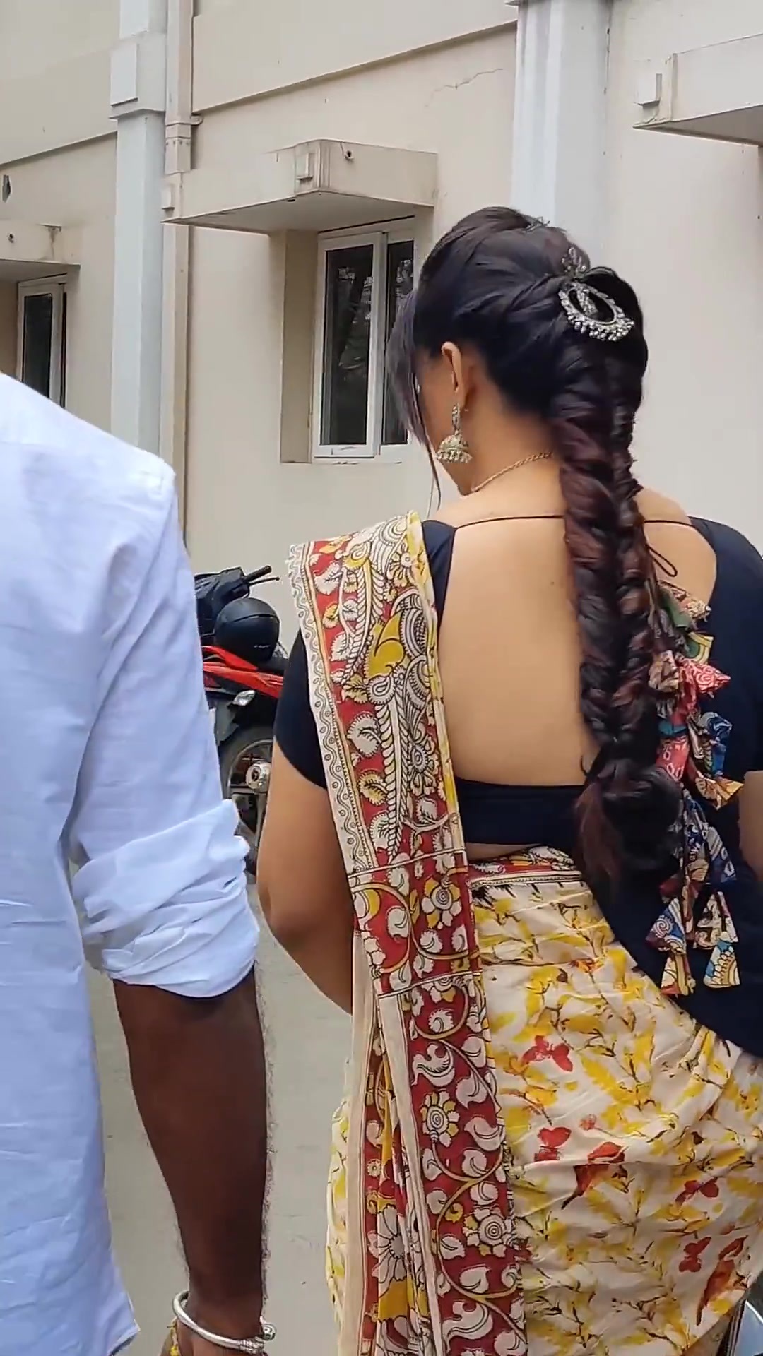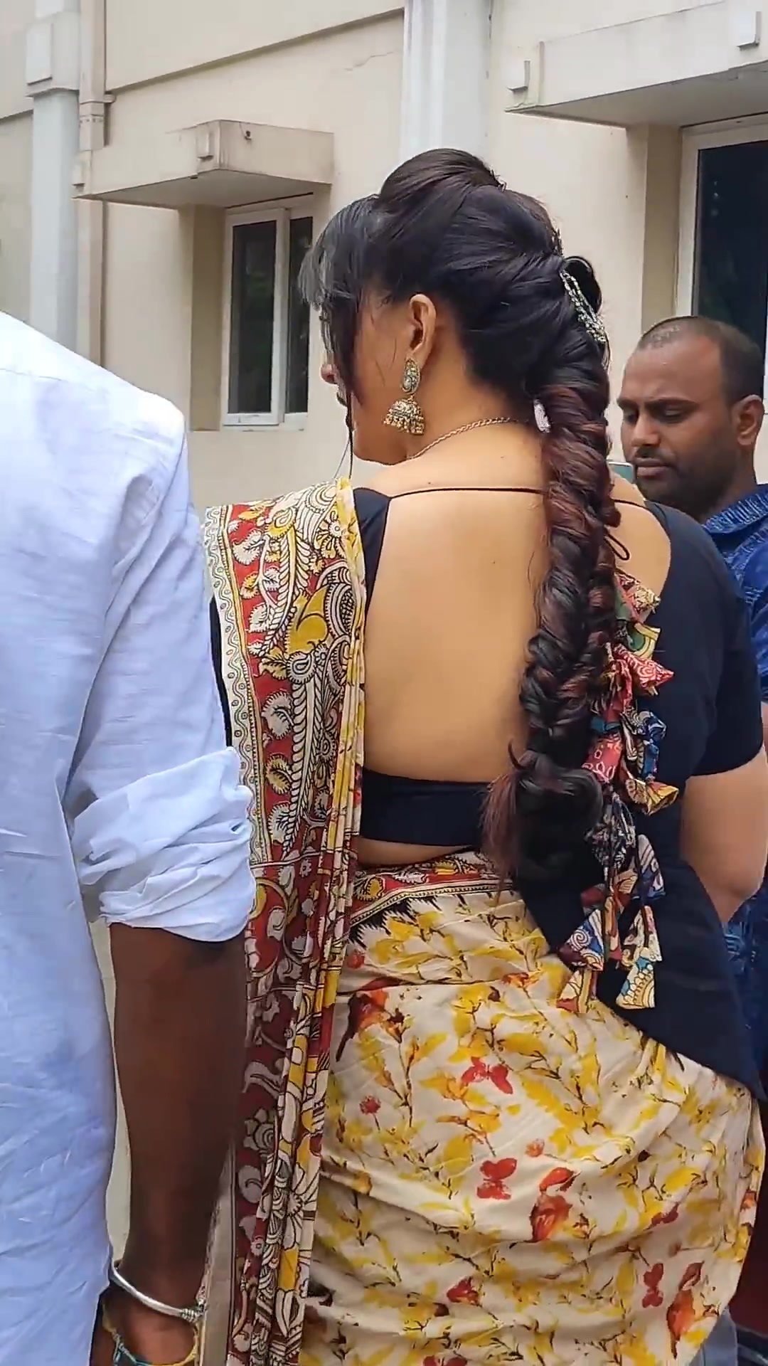 yellow satin saree