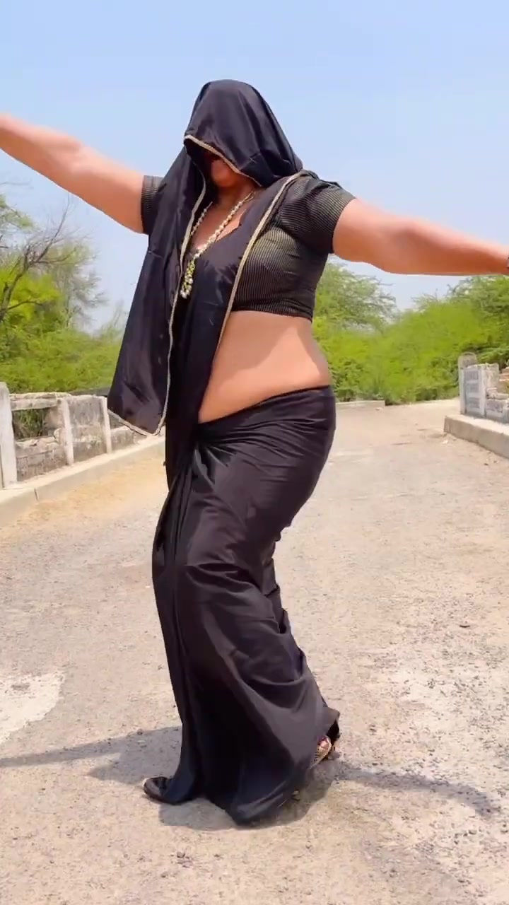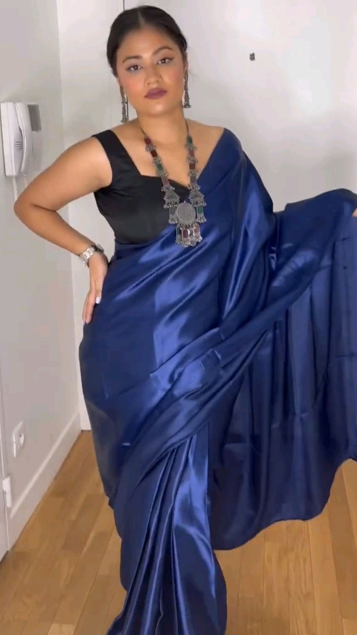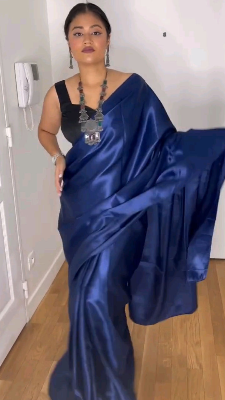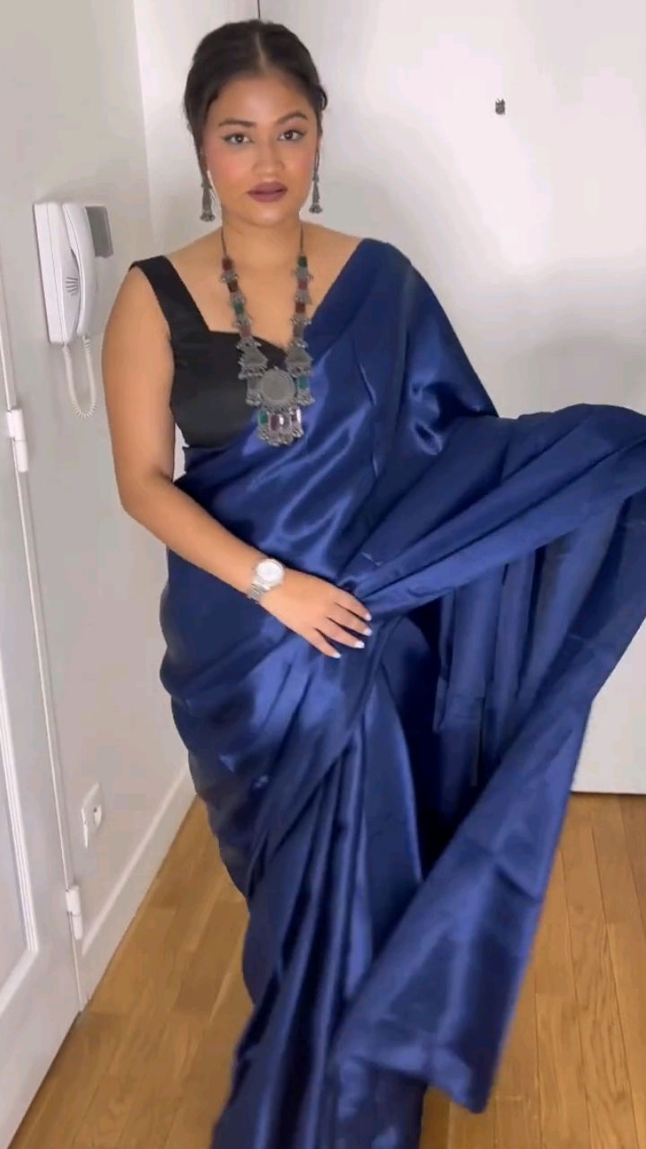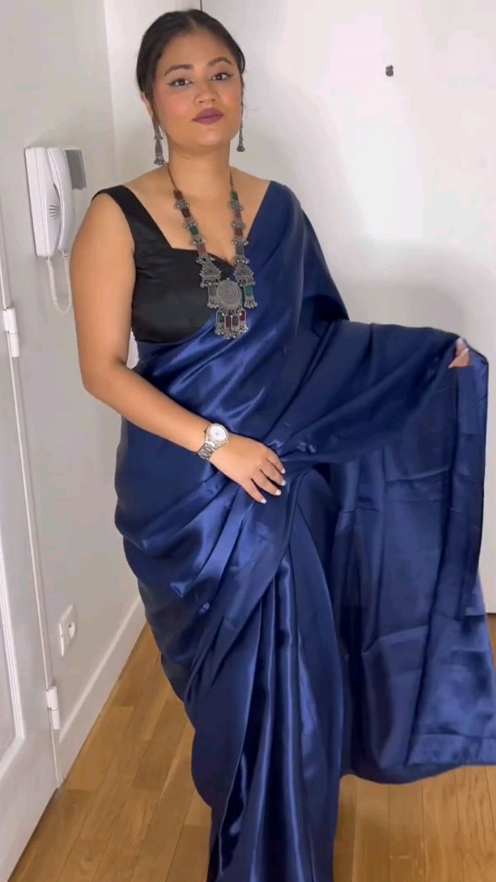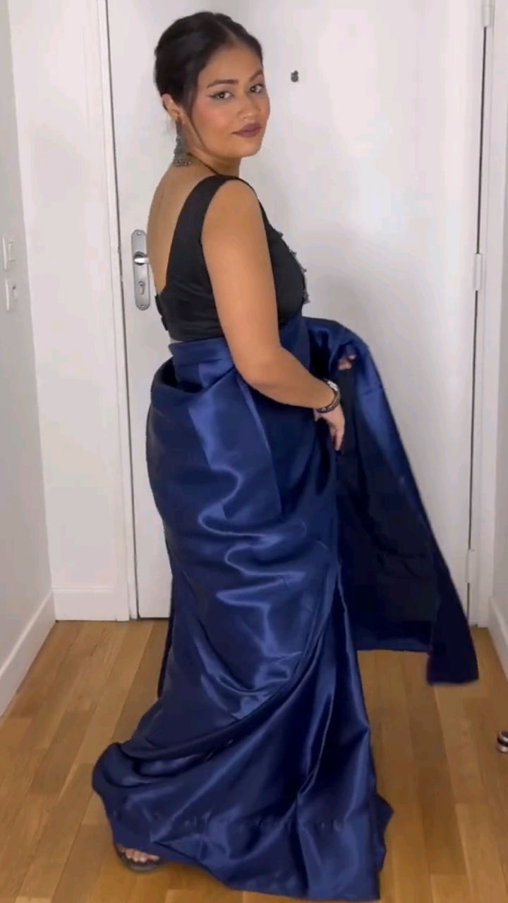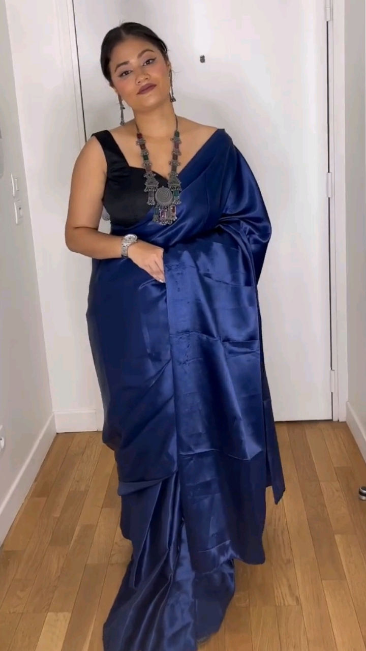 Black satin saree