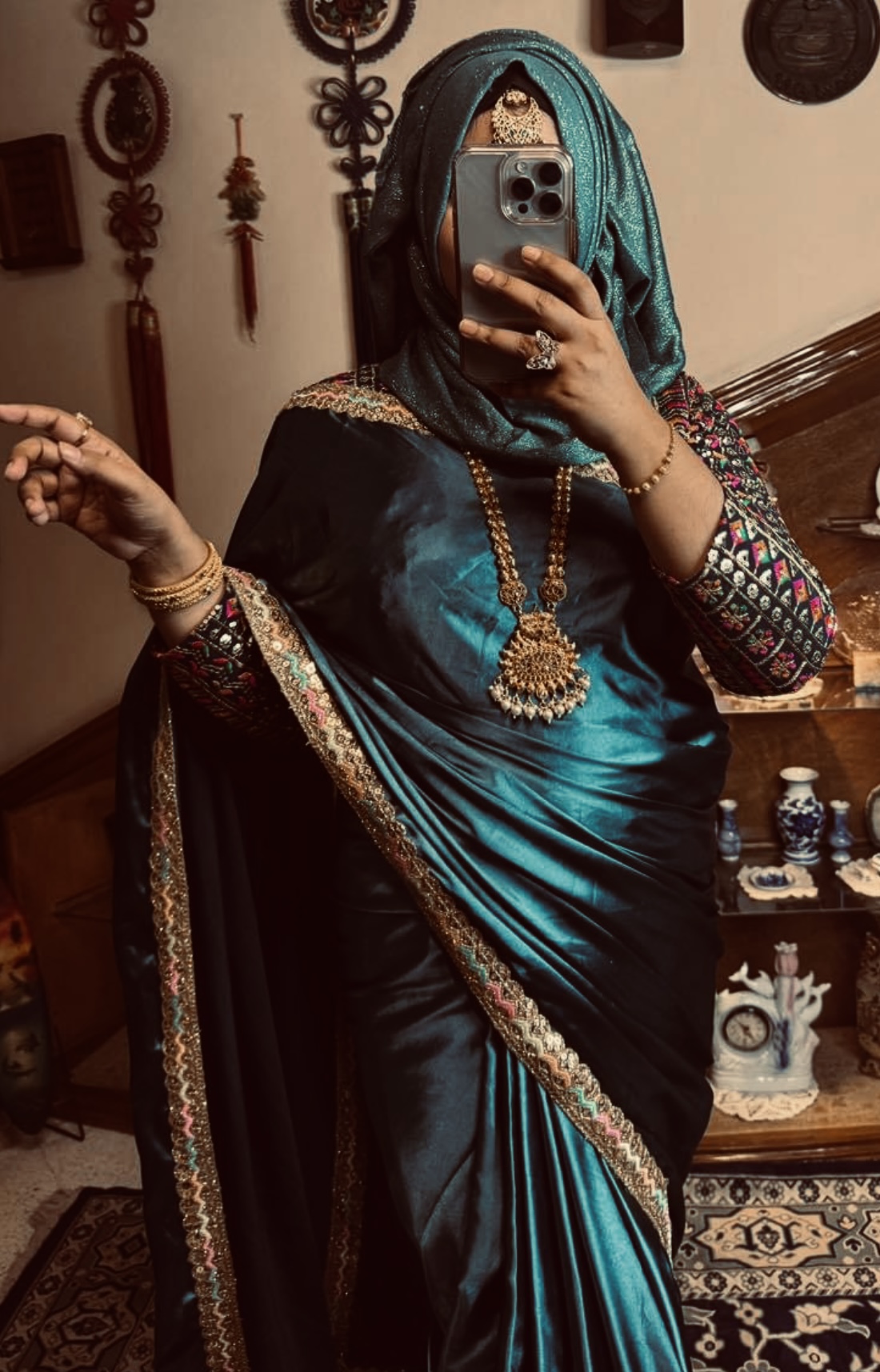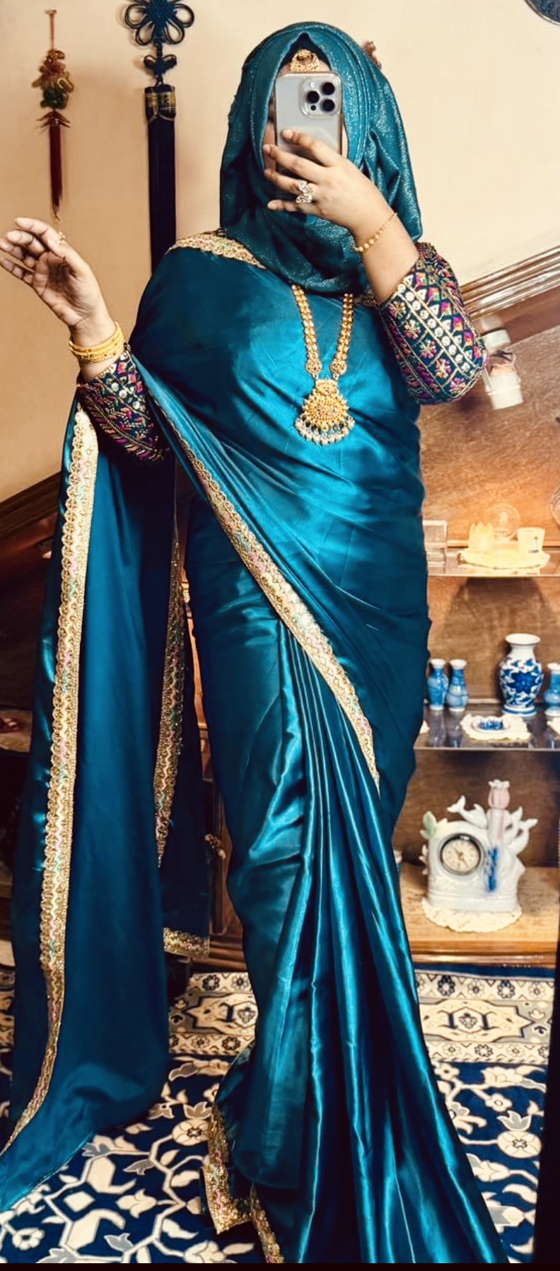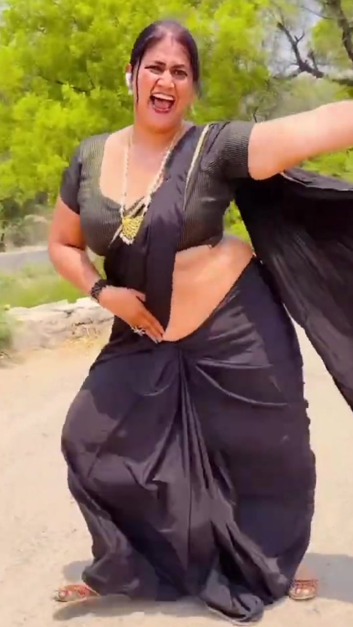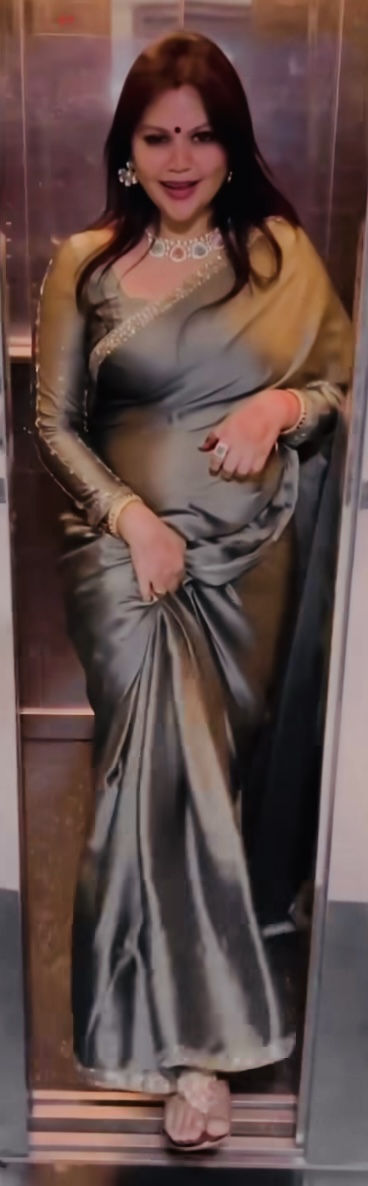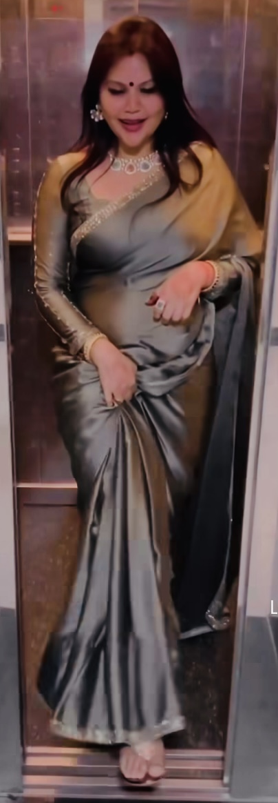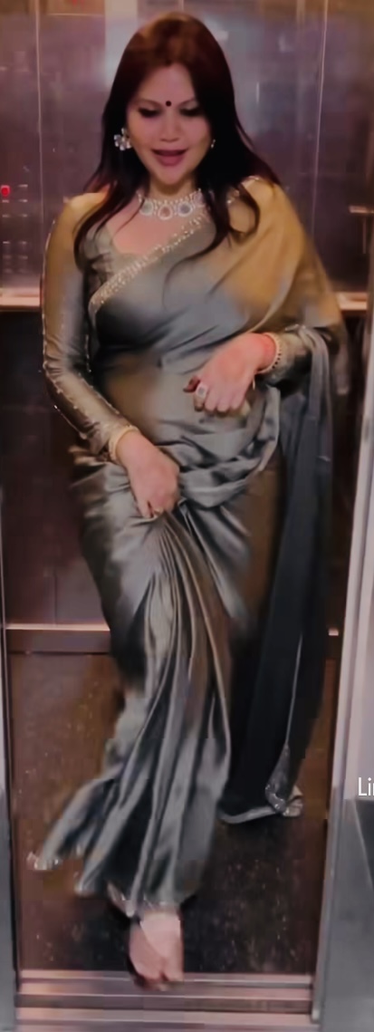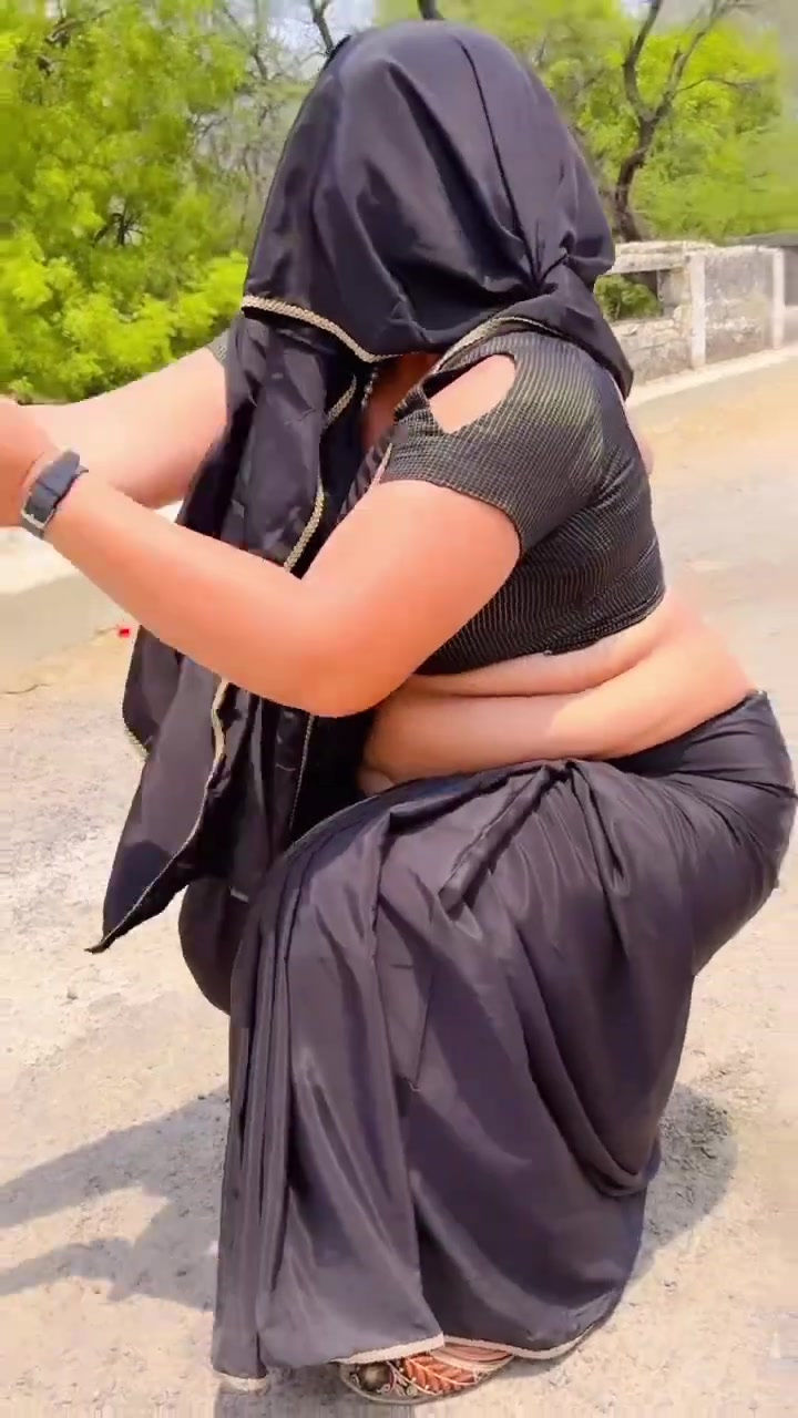 Black satin saree