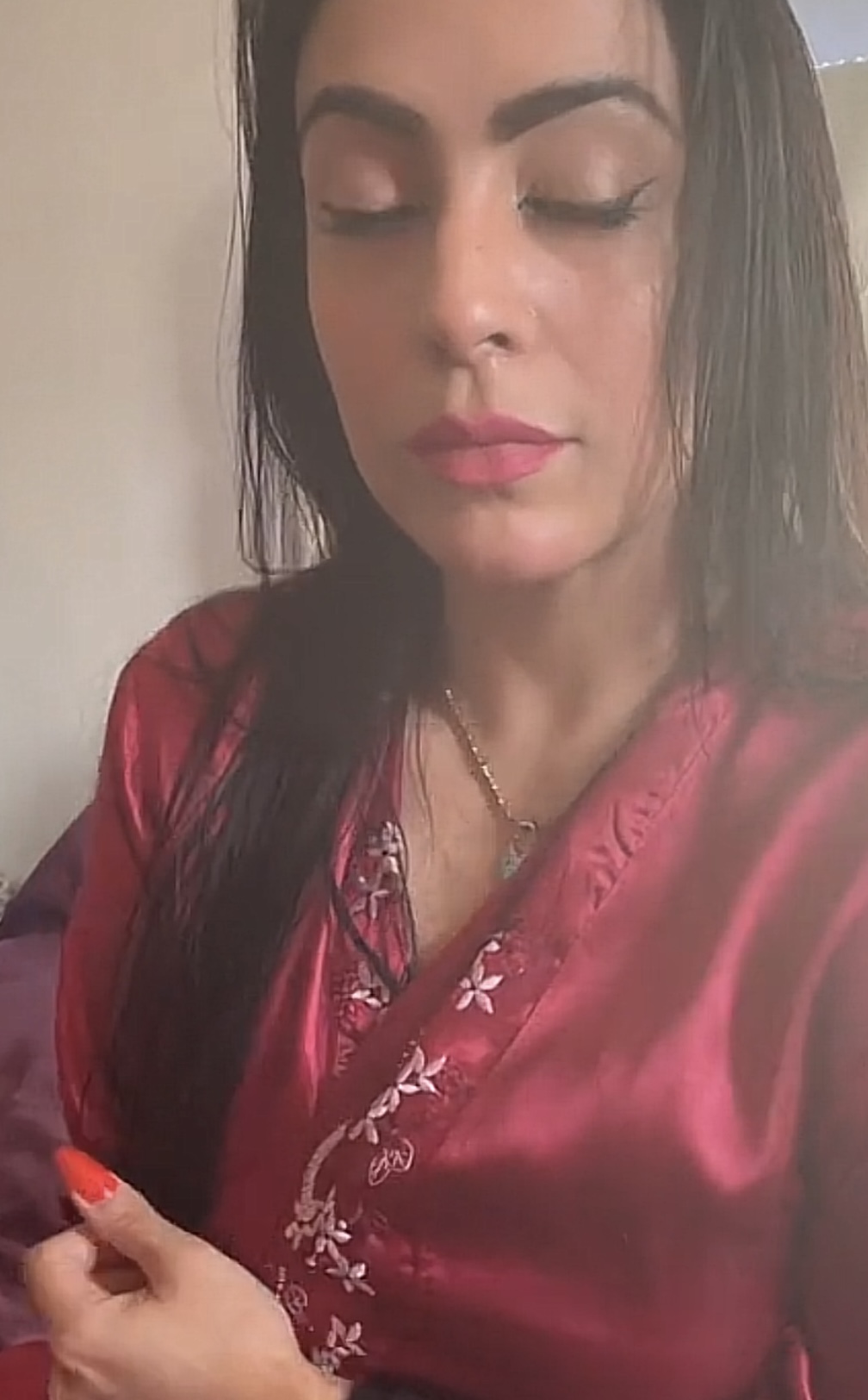 Red silky satin robe