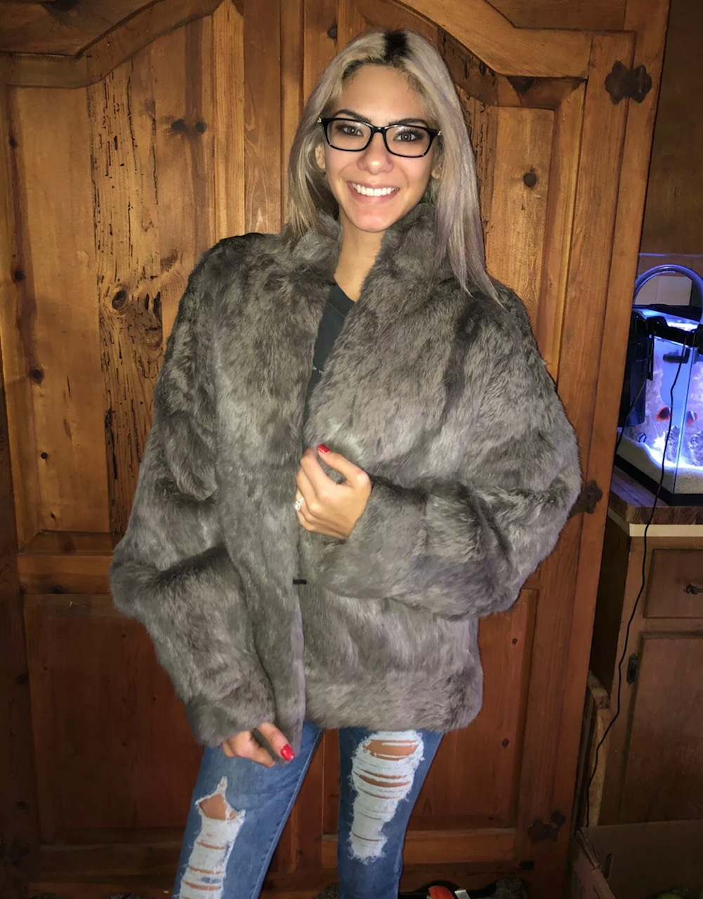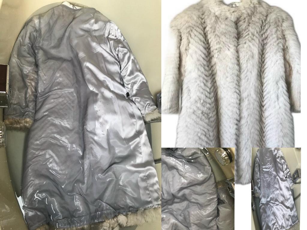 "Niki" branded grey rabbit fur coat I scored off ebay for $60. Take a look at the smoking hot model wearing it. The lining is a HEAVENLY acetate satin that felt like nothing I have ever experienced when I slid it up and down and around my rock hard cock. I imagine this sexy body in a revealing dress out on the town with her partially naked body in the soft warm satin gliding on her silky smooth skin.