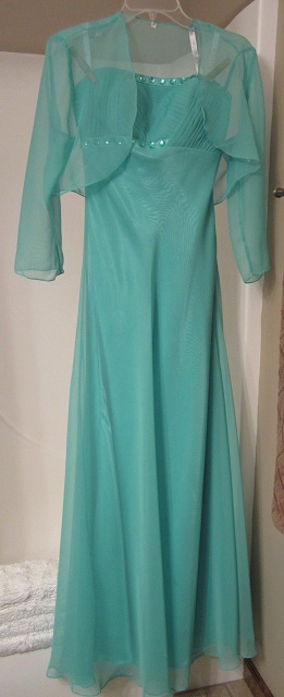 This dress is a Mary's Bridal and was advertised as being worn only once for a couple of hours. I won it for less than $20.00 (US) including shipping. It has a soft filmy overlay and a double lining. It's a well made dress. When I e'd the seller, she was VERY descriptive of what her dress felt like