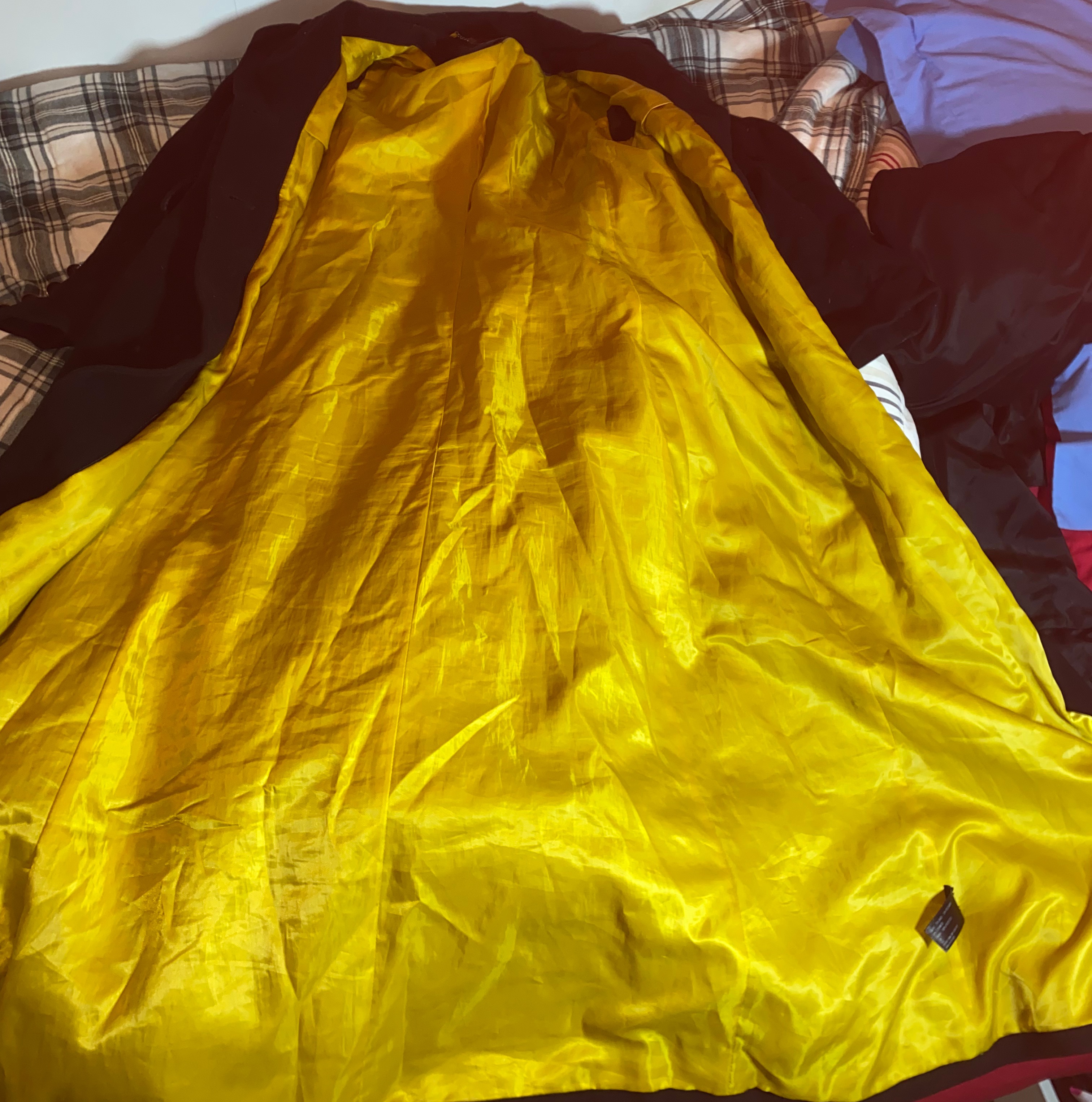 That heavenly thick golden satin brought back memories. I was 16 years old and at a friend's house. His cousin came back from a ballet recital and had a coat just like that. I remember being paralyzed when I saw her slide that coat off her barely clothed body. I had my way with that coat that night, snuck it off into the downstairs guest bedroom. Still strong with her scent and perfume. I came down the right sleeve with a massive load of semen only a horny 16 year old could deliver. I wiped up my carnage with a sock. I am sure it left a big stain. But damn did it feel like nothing else. Wonder if she ever knew someone violated her coat?