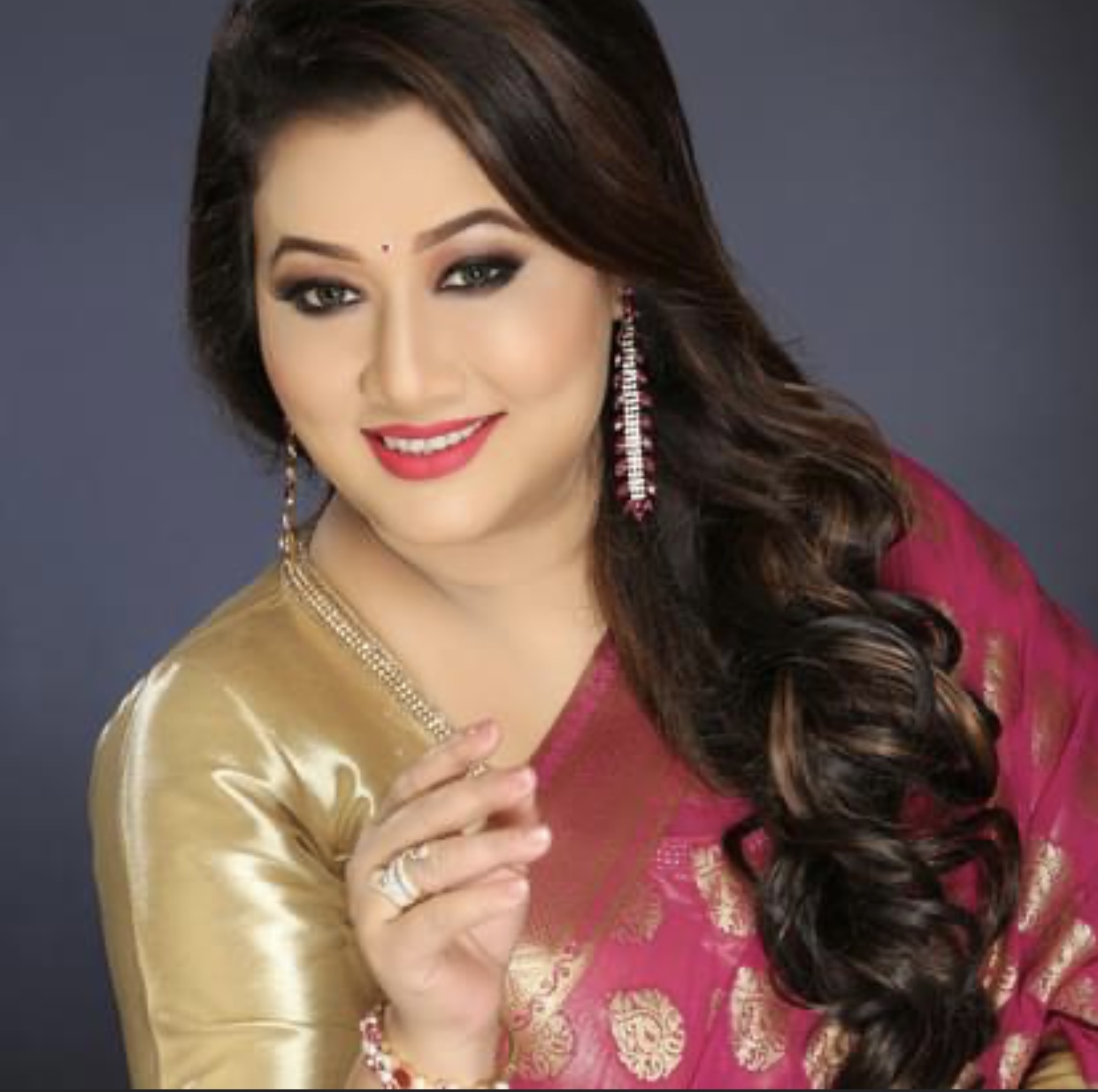 Pink satin saree