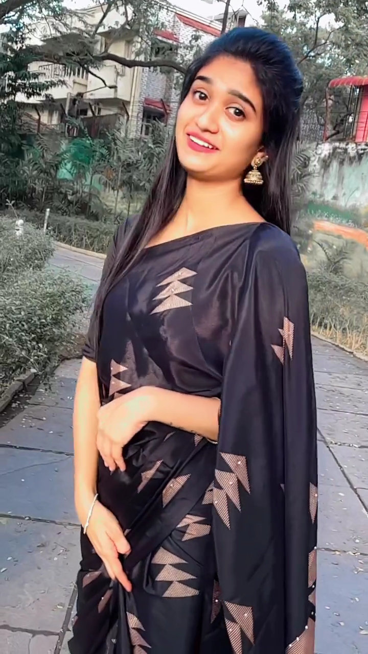 Black satin saree
