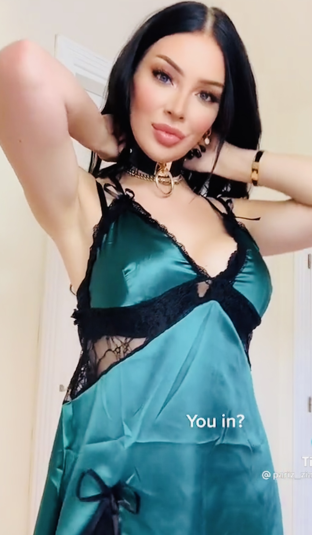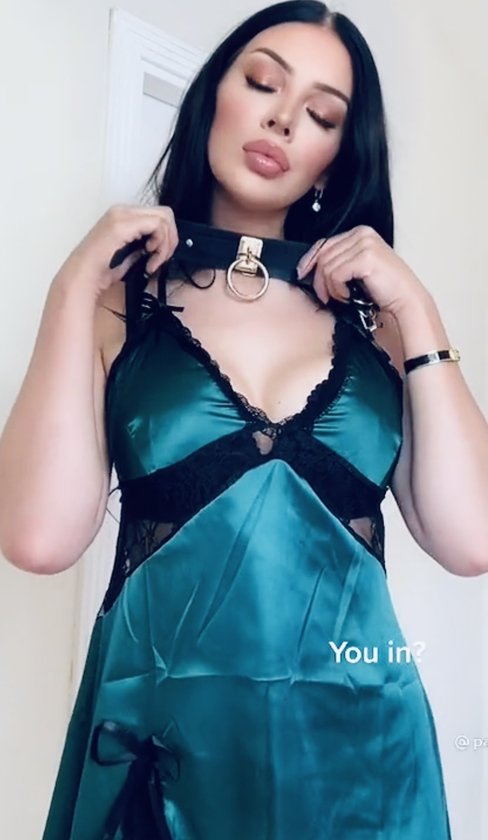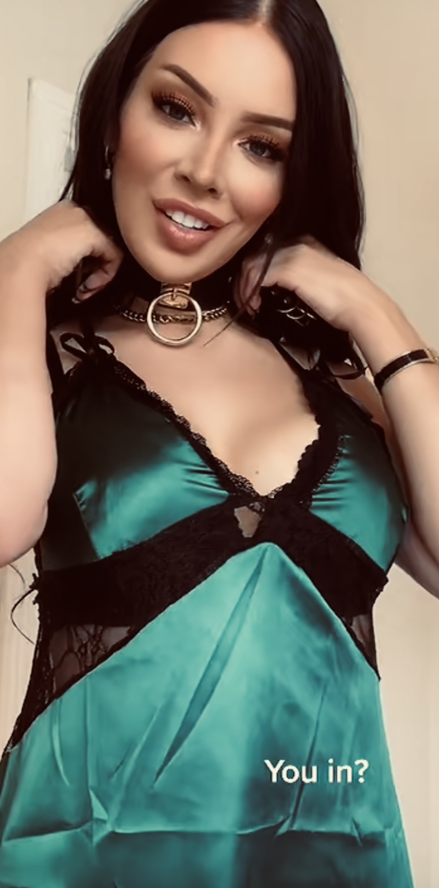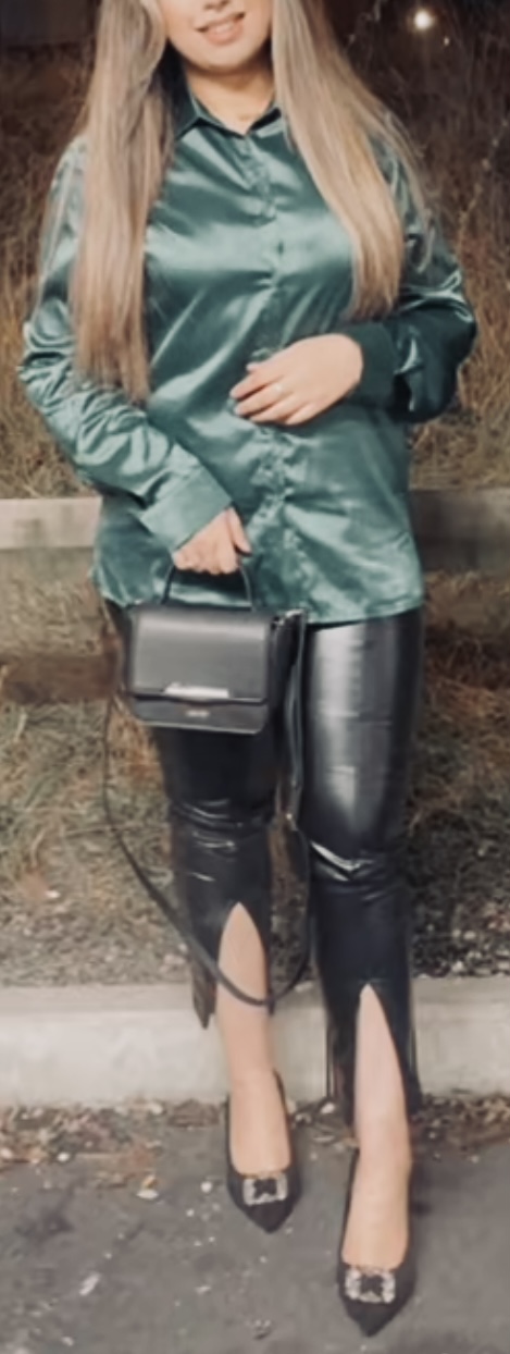 Lovely green satin shirt babe
