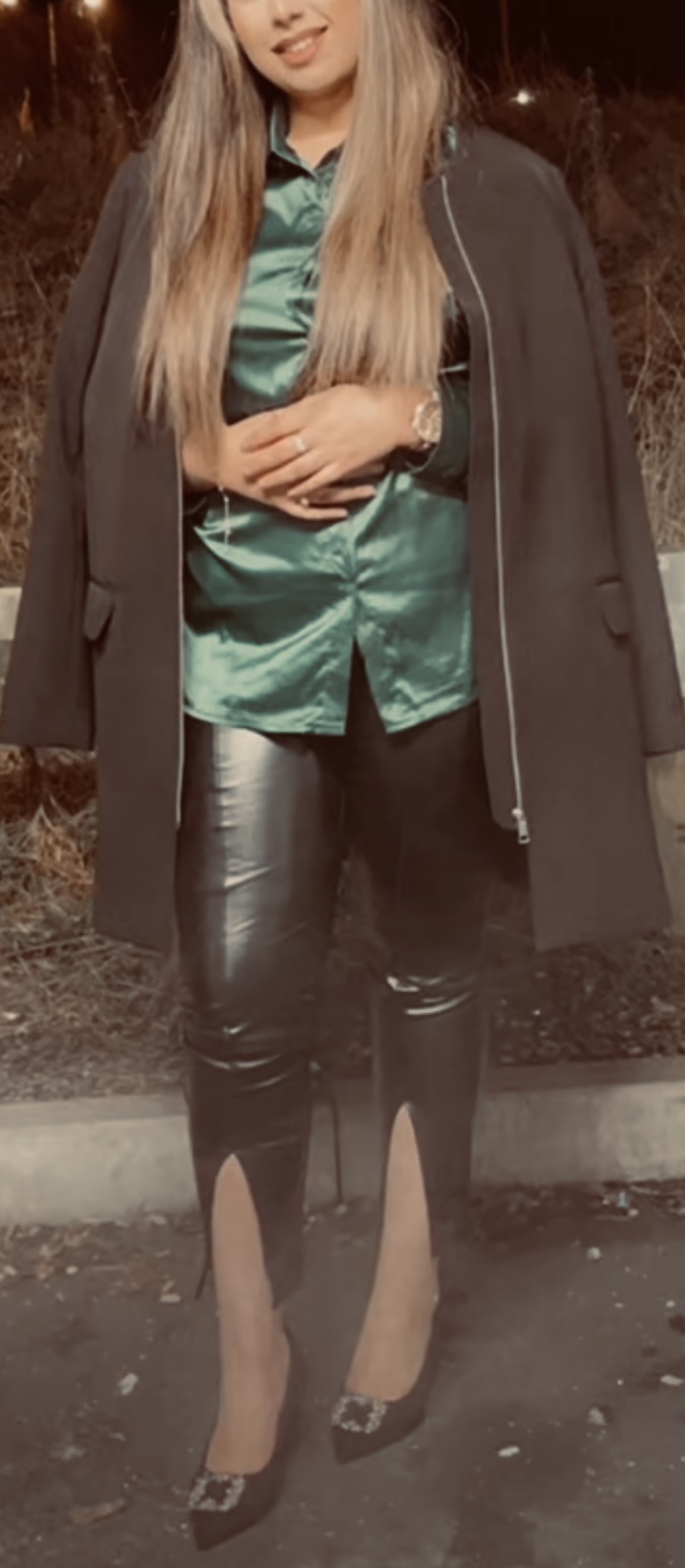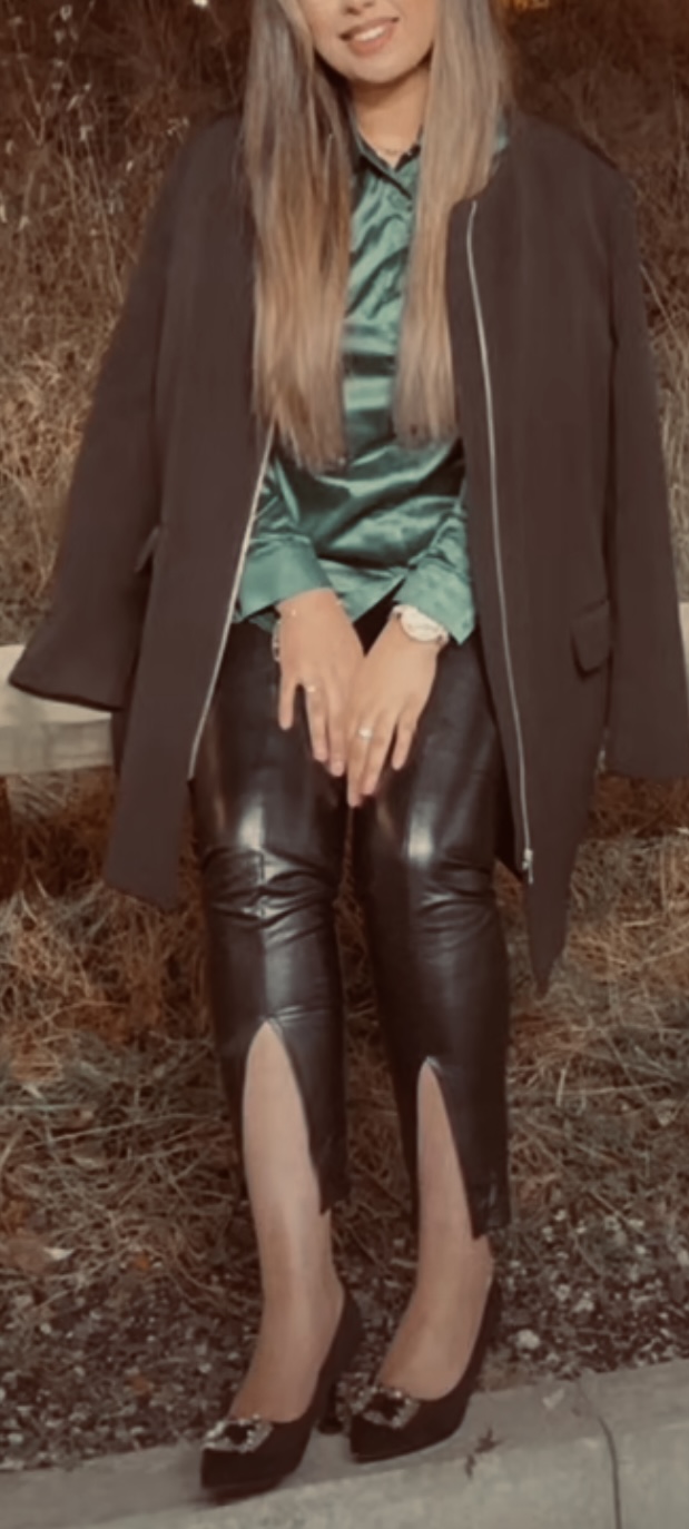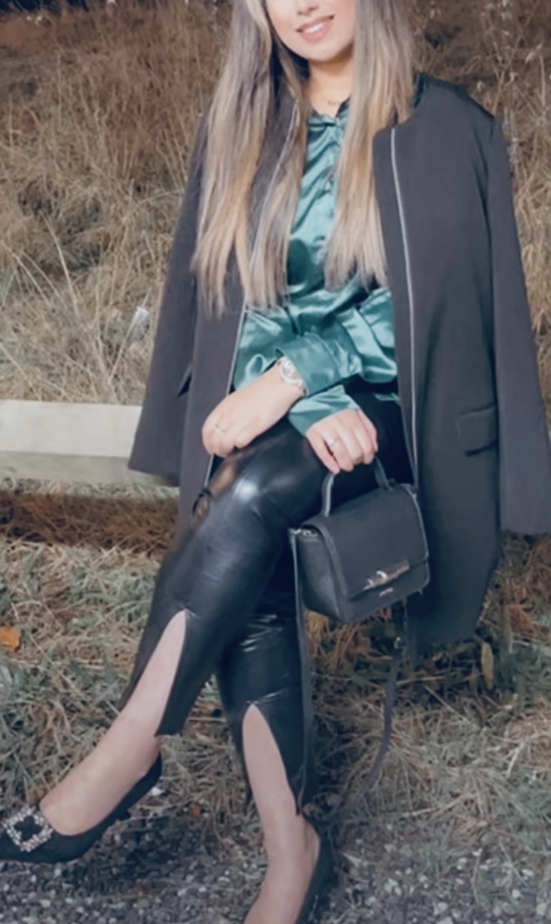 Green satin & black leather ..