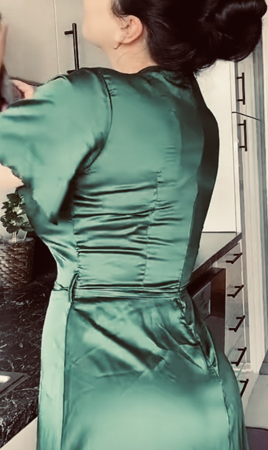 Satin babes in green silky shiny soft satin ..