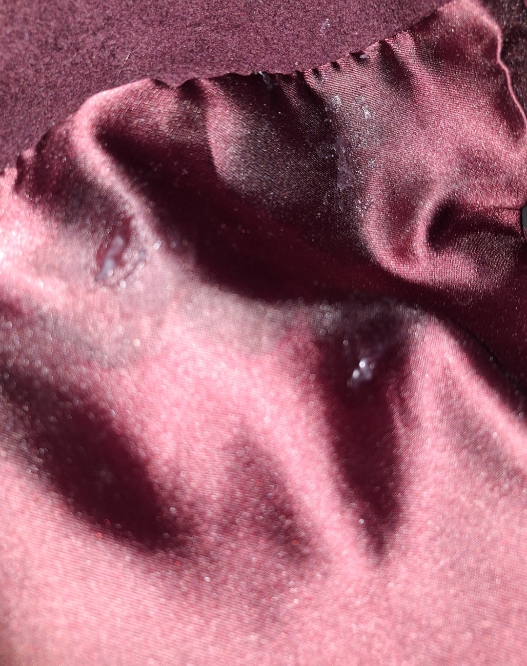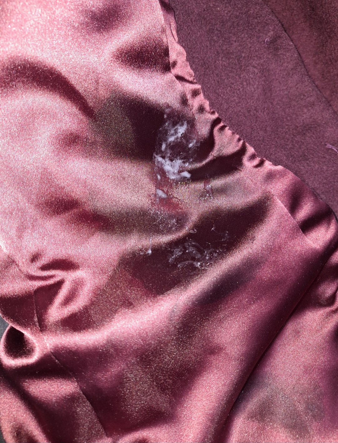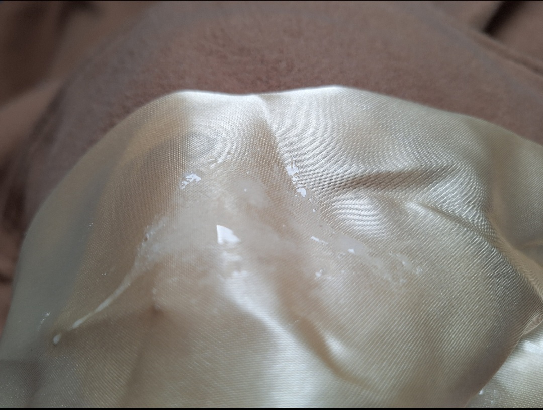 masturbated with it, and I got semen all over it. Unfortunately, it'll stay like this because it needs to be dry cleaned since it's wool and cashmere, and I won't go.